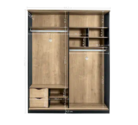 - Εξωτερικές διαστάσεις ντουλάπας: Π164xΒ59xΥ206εκ.
