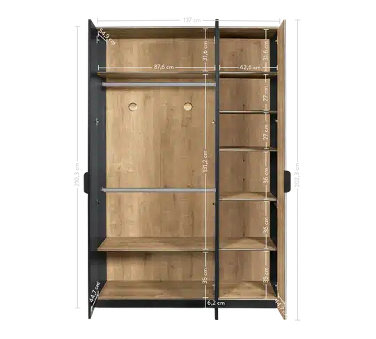 - Εξωτερικές διαστάσεις ντουλάπας: Π135xΒ53xΥ210εκ.