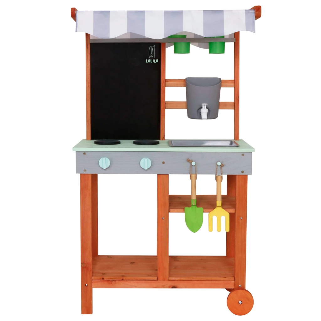 Η ξύλινη κουζίνα είναι ένα εξαιρετικό παιχνίδι εξωτερικού χώρου που συνδυάζει τη δημιουργικότητα, την εκπαίδευση και το παιχνίδι με τη φύση. Είναι κατασκευασμένη από εμποτισμένο, ανθεκτικό στην υγρασία και τις καιρικές συνθήκες ξύλο ελάτου, προσφέροντας ασφάλεια, σταθερότητα και μεγάλη διάρκεια ζωής.
