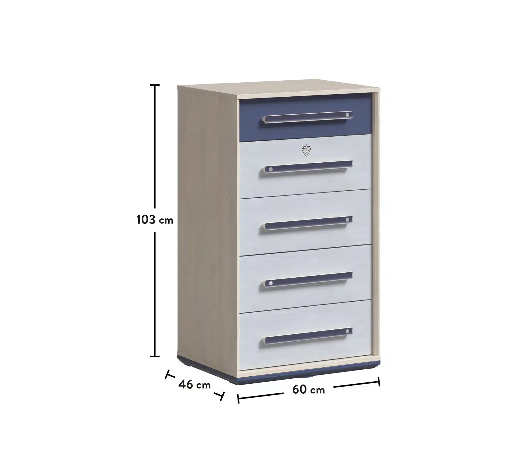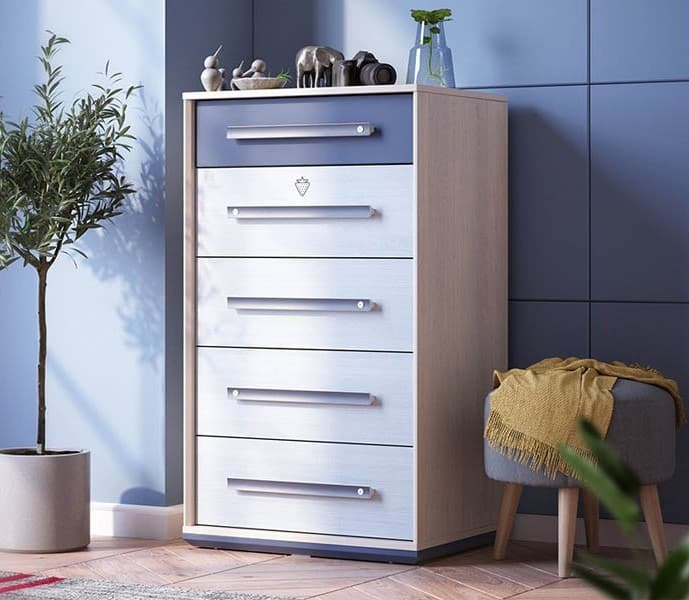 Η παιδική συρταριέρα με 5 συρτάρια αποτελεί ένα λειτουργικό και κομψό έπιπλο που συμπληρώνει ιδανικά το παιδικό δωμάτιο.