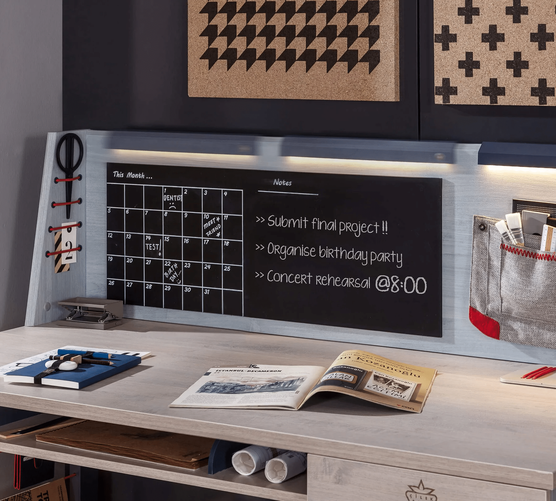 Επιπλέον, διαθέτει μαυροπίνακα για σημειώσεις και ειδικό χώρο για μικροαντικείμενα, δημιουργώντας έναν πρακτικό και οργανωμένο χώρο μελέτης.