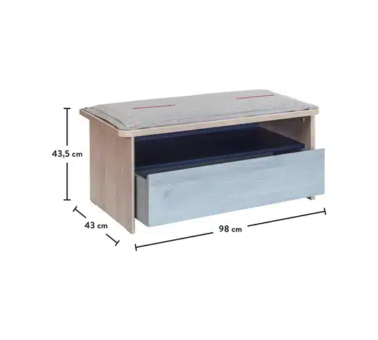 Διαθέτει άνετο κάθισμα και ενσωματωμένο συρτάρι, προσφέροντας επιπλέον χώρο αποθήκευσης για μικροαντικείμενα ή προσωπικά είδη.
