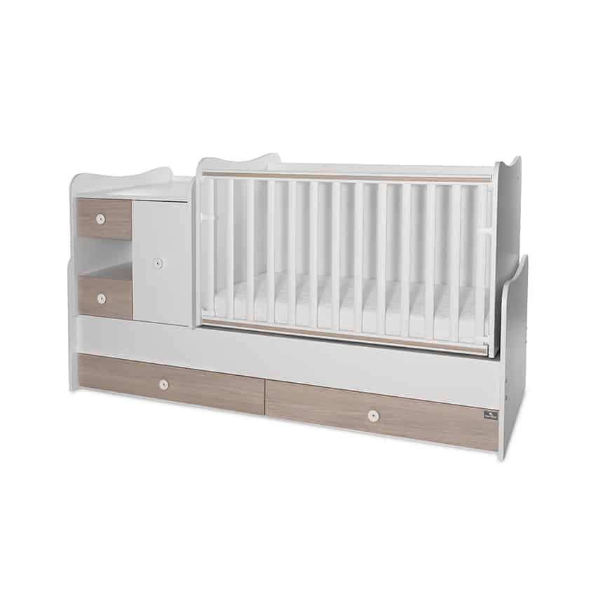 Πολυμορφικό βρεφικό κρεβάτι MiniMax με εργονομικό σχεδιασμό, ιδανικό για παιδιά από 0 έως 18 ετών. Στην αρχική του μορφή είναι ένα βρεφικό κρεβάτι με δύο μεγάλα συρτάρια στη βάση, τρία μικρότερα και επίπεδο για την τοποθέτηση της αλλαξιέρας.