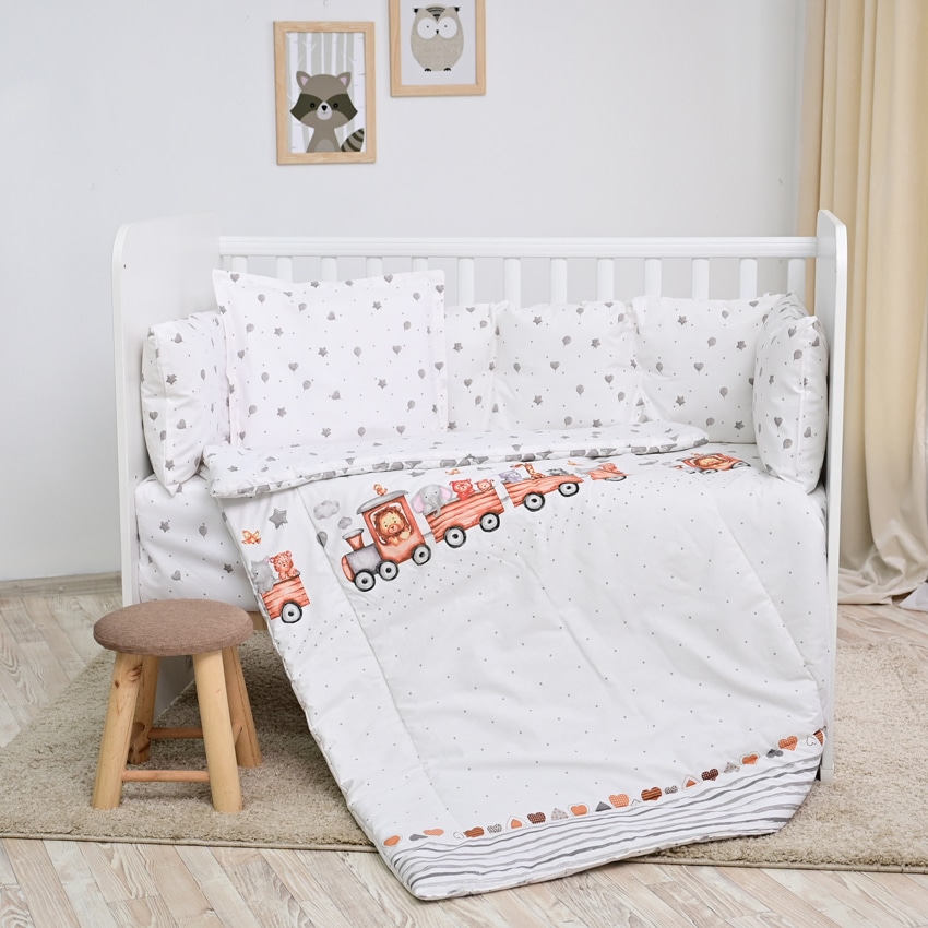 Σετ Προίκας Μωρού κούνιας 5τεμ. 70x140cm Train Grey 20800086001 Lorelli