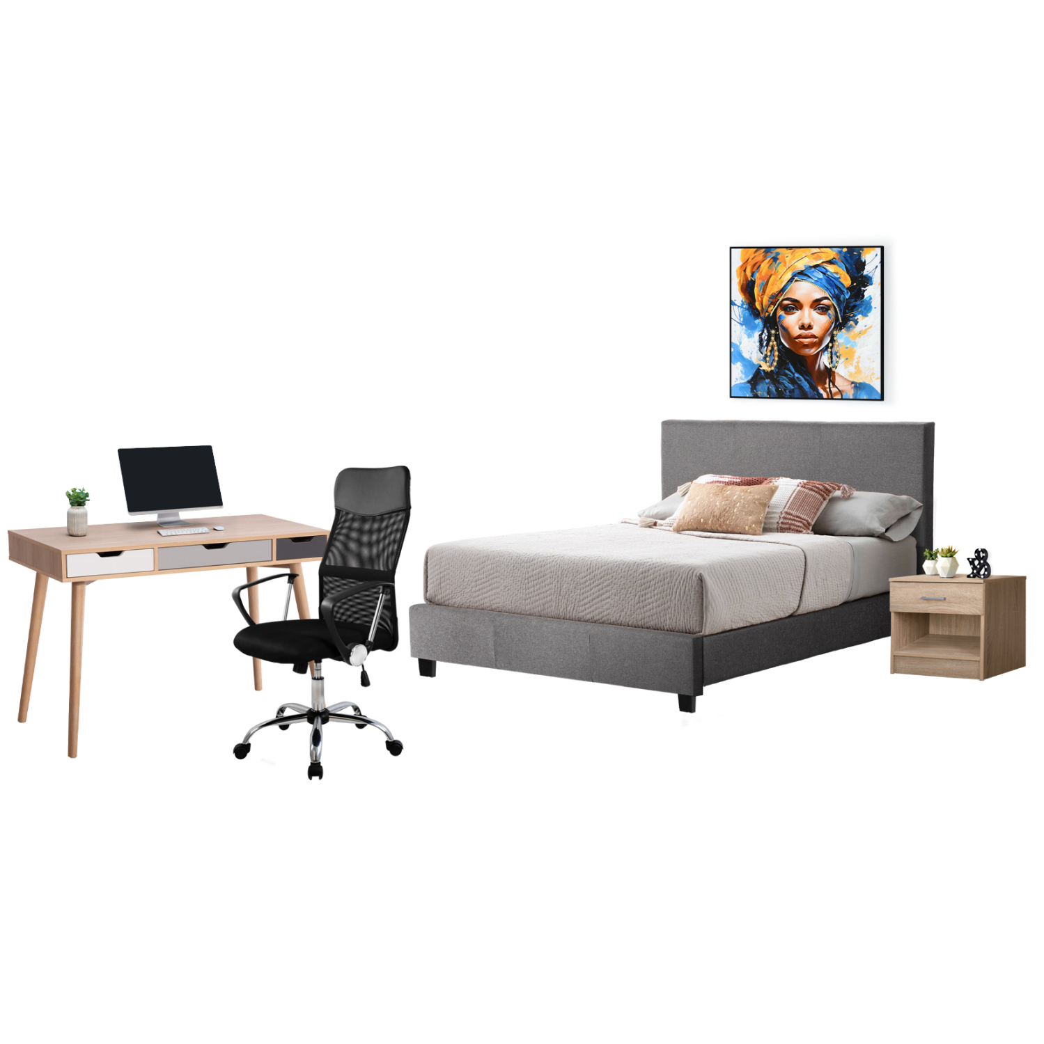 Αυτό το σετ περιλαμβάνει κρεβάτι, κομοδίνο, γραφείο, καρέκλα γραφείου, και πίνακα τοίχου!