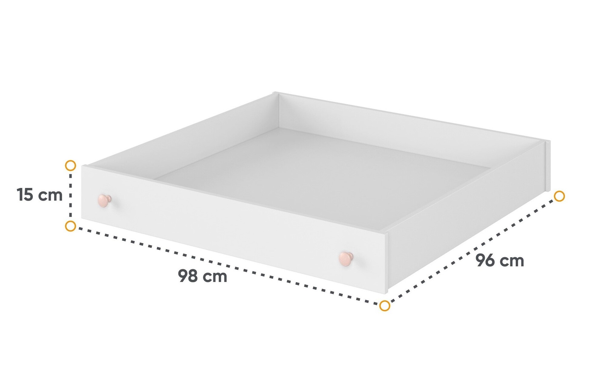- Εξωτερική Διάσταση Συρταριού: Μήκος 98cm x Πλάτος 96cm x Ύψος 15cm