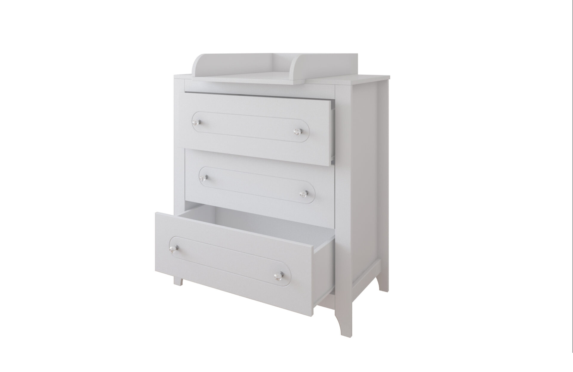 Η λευκή συρταριέρα από την σειρά Glamour ξεχωρίζει για τον κλασικό και κομψό σχεδιασμό της και τα πορσελάνινα πόμολά της. Διαθέτει 3 μεγάλα συρτάρια, που εξυπηρετούν για να τακτοποιήσετε όλα σας τα ρούχα εύκολα.