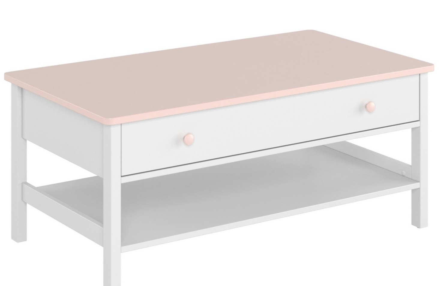 Το κομψό και μοντέρνο τραπέζι LUNA με συρτάρι σε λευκό χρώμα με ροζ επιφάνεια αποτελεί μια τέλεια προσθήκη σε ένα παιδικό δωμάτιο.