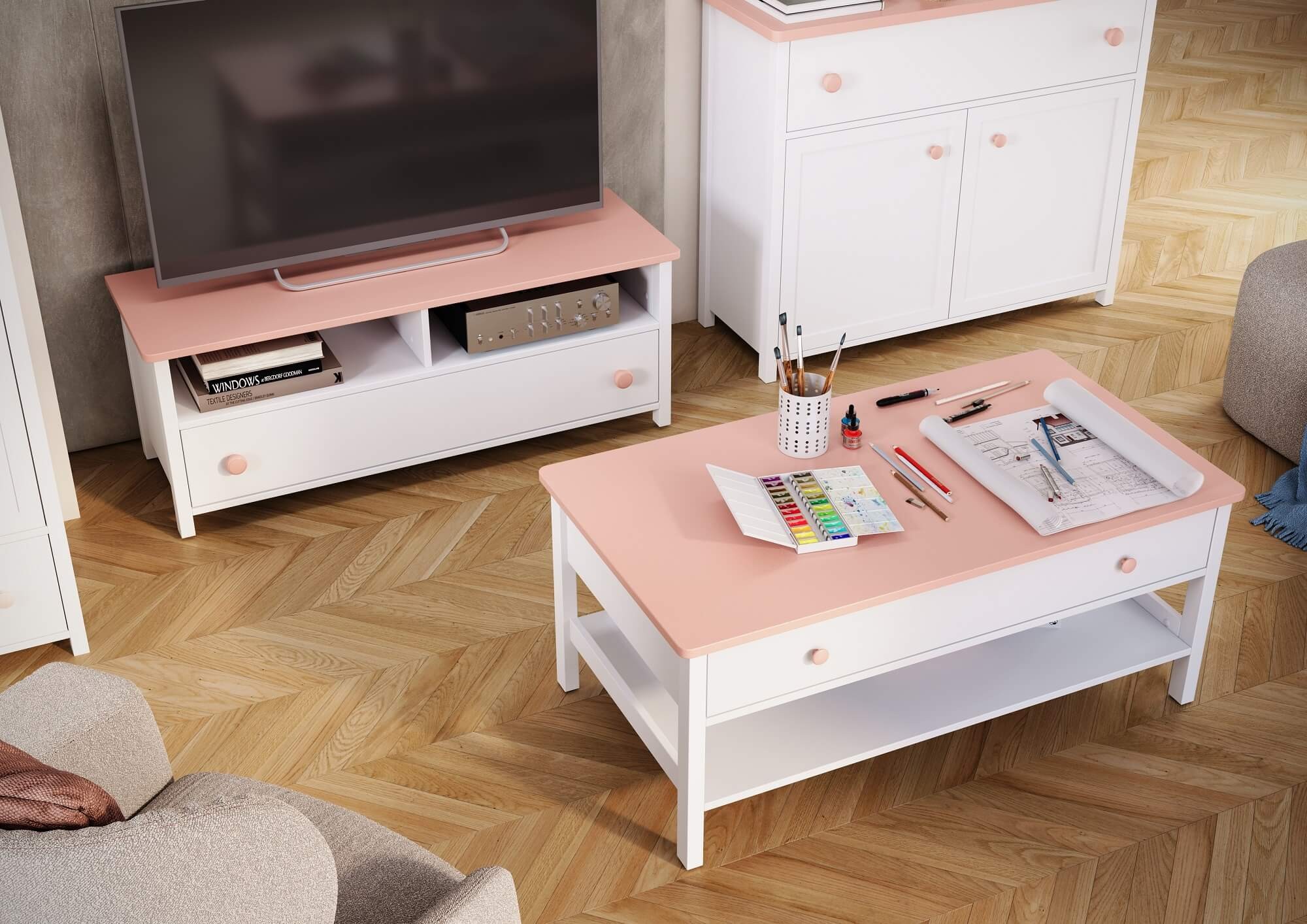Έπιπλο τηλεόρασης Luna White & Pink LN-13