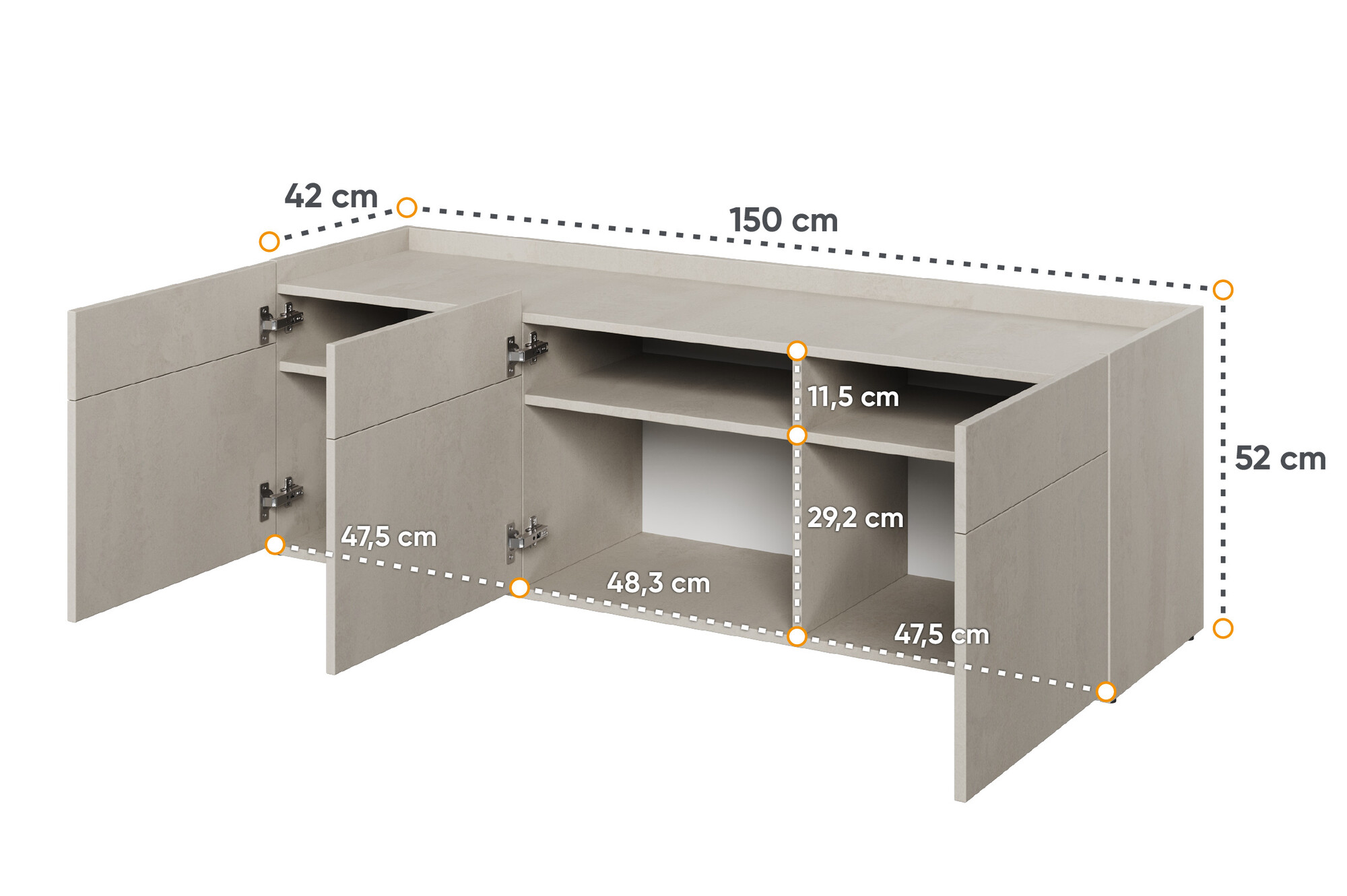 - Εξωτερική Διάσταση: Μήκος 150cm x Πλάτος 42cm x Ύψος 52cm