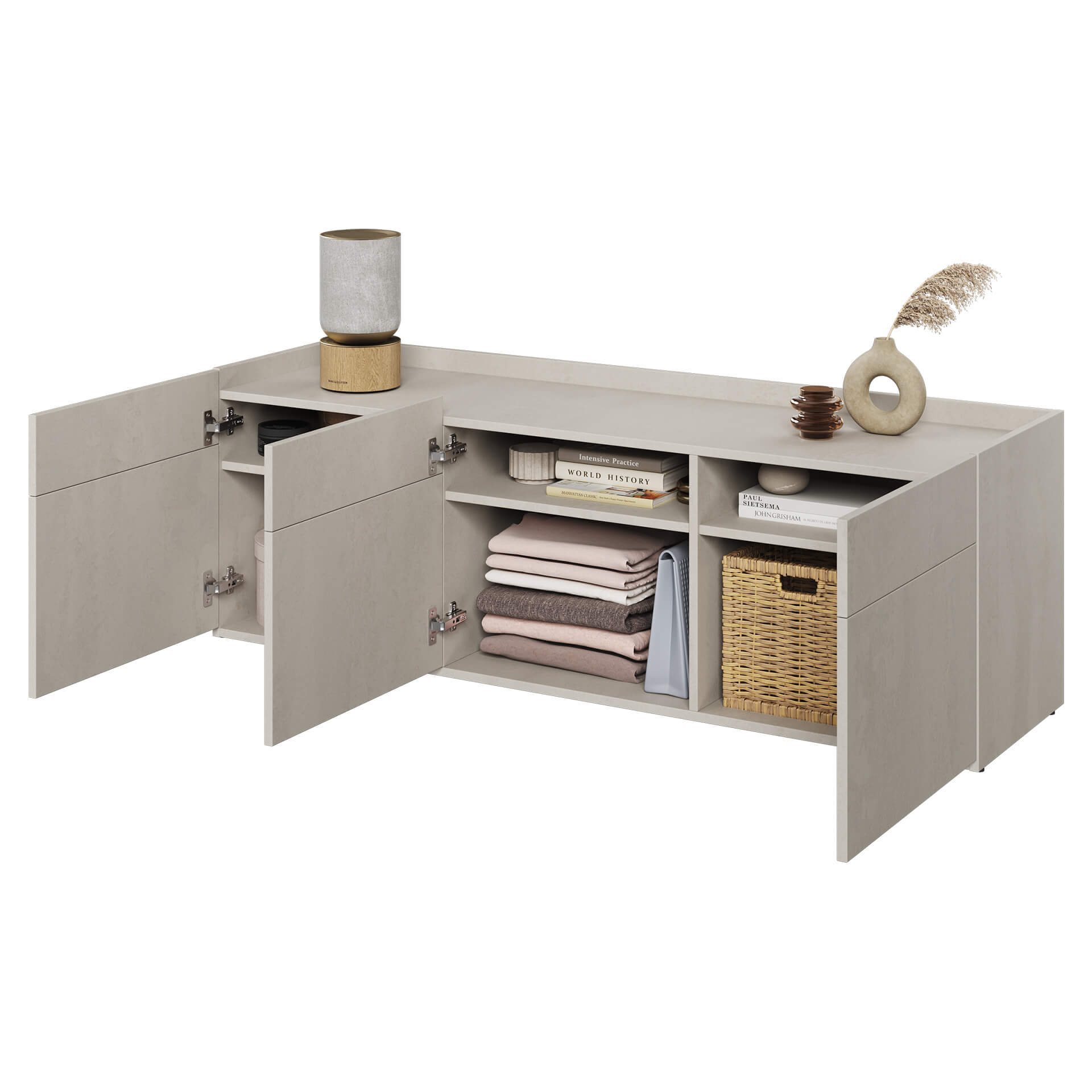 Μοντέρνα συρταριέρα Teen Flex για το παιδικό ή το εφηβικό δωμάτιο με τρεις πόρτες. Στο εσωτερικό, διαθέτει μια λειτουργική διάταξη ραφιών που θα διευκολύνει την τακτοποίηση των πραγμάτων. Τα έπιπλα είναι εξοπλισμένα με χαμηλωμένη επιφάνεια τραπεζιού, χάρη στην οποία τα αντικείμενα που εκτίθενται στην επιφάνειά τους προστατεύονται από πτώση.
