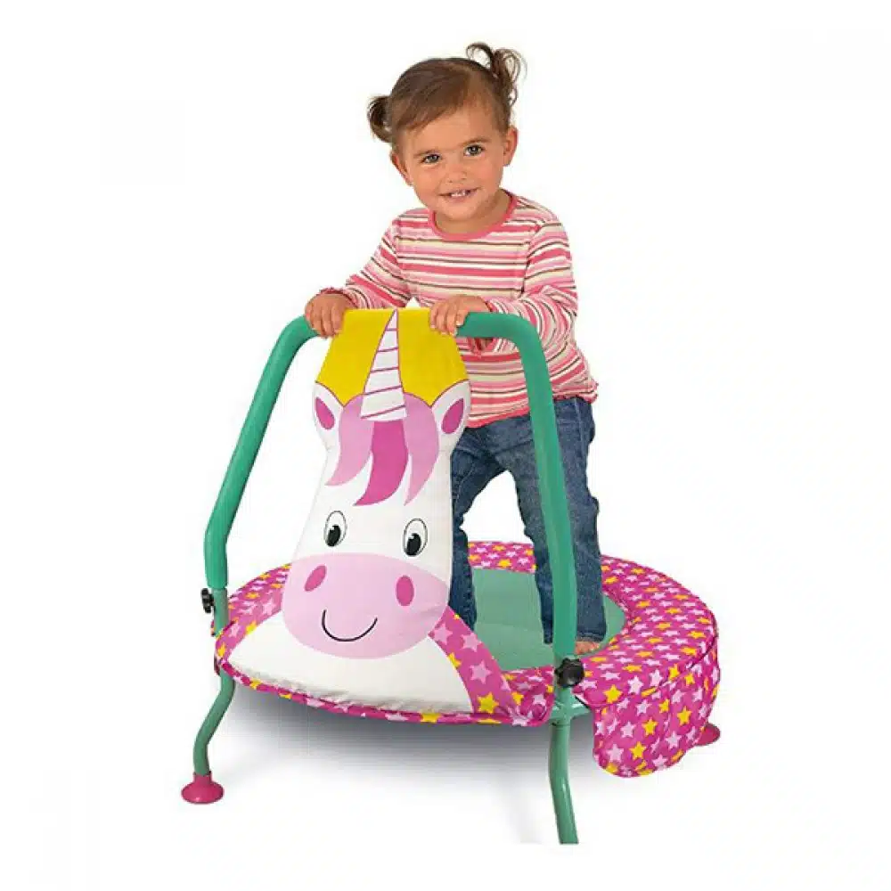 Ένα διασκεδαστικό τραμπολίνο σε σχήμα μονόκερου για να αναπτύξει την αυτοπεποίθηση του παιδιού καθώς και να ενθαρρύνει τον συντονισμό και την ισορροπία.