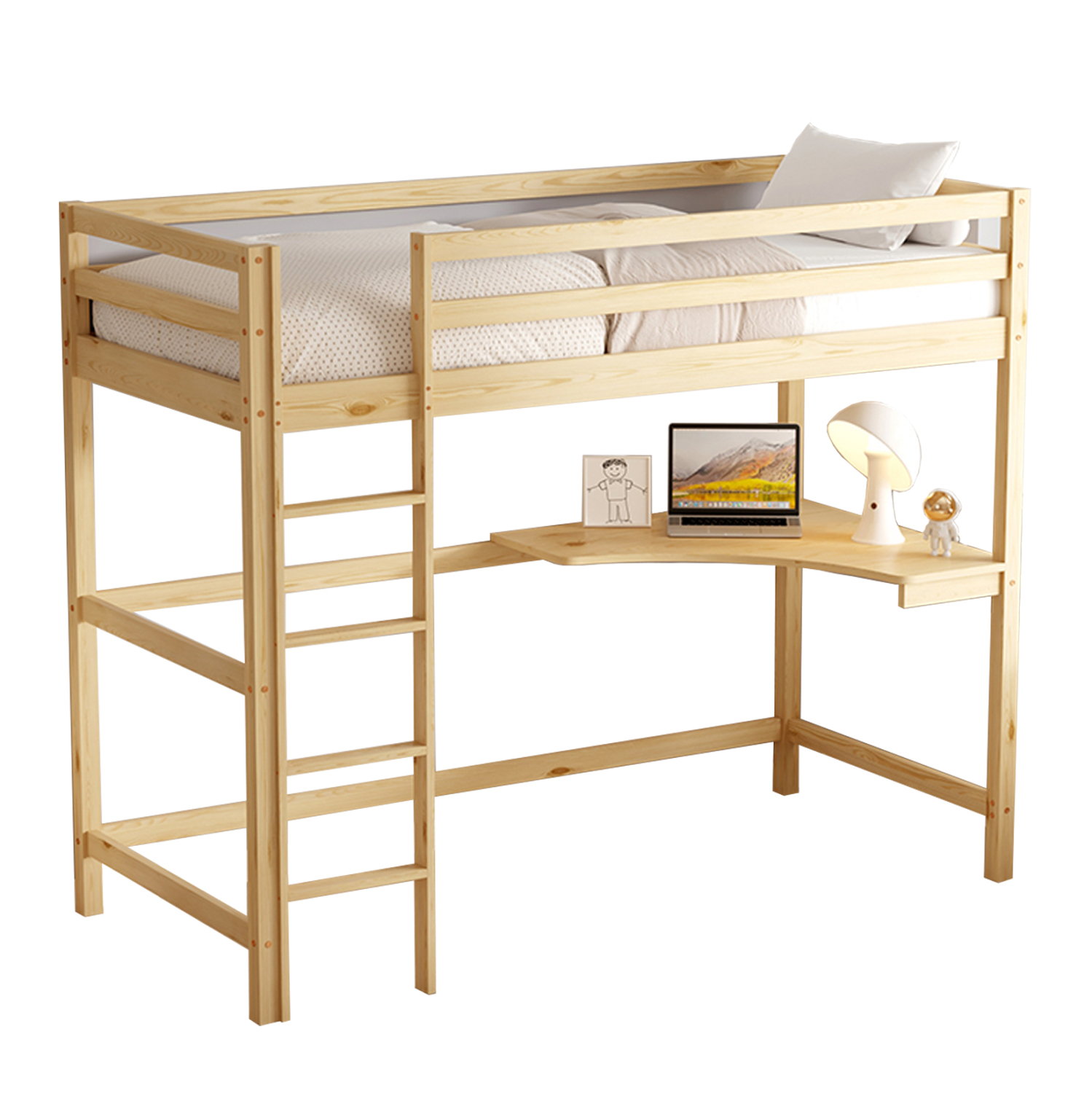 Υπερυψωμένο Κρεβάτι με Γραφείο Akron Με Στρώμα από μασίφ ξύλο Natural 90×190cm