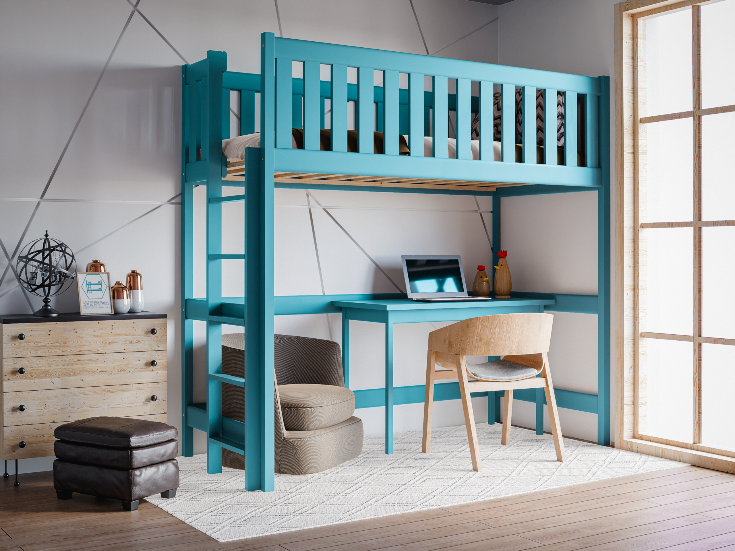 Το υπερυψωμένο κρεβάτι Leon αποτελεί ιδανική λύση όταν το παιδικό δωμάτιο δεν διαθέτει αρκετό χώρο για γραφείο ή επιπλέον έπιπλα. Έτσι, αξιοποιείτε το ύψος του χώρου και δημιουργείτε κάτω από το κρεβάτι επιπλέον χώρο αποθήκευσης ή έναν άνετο παιχνιδότοπο για το παιδί.