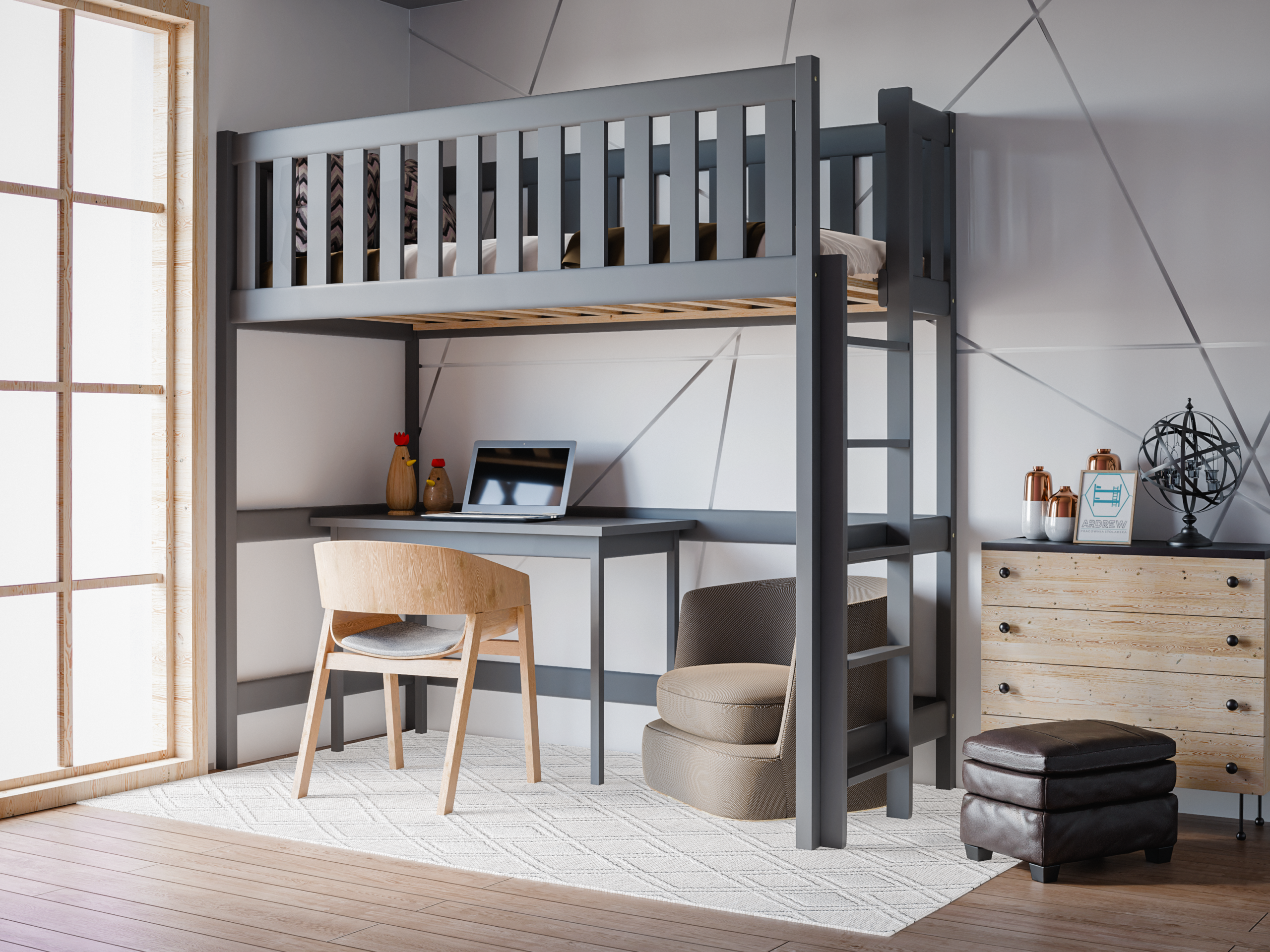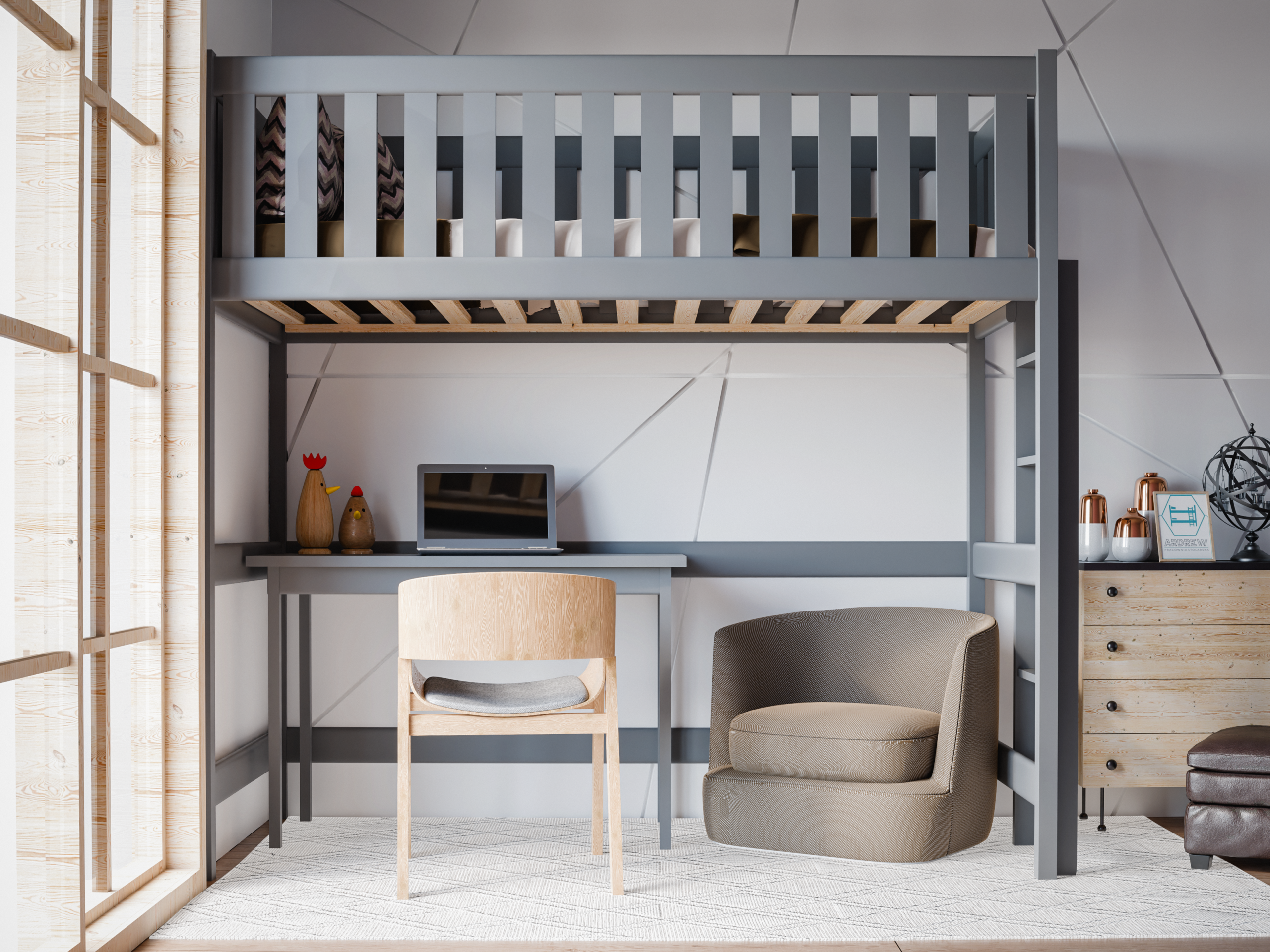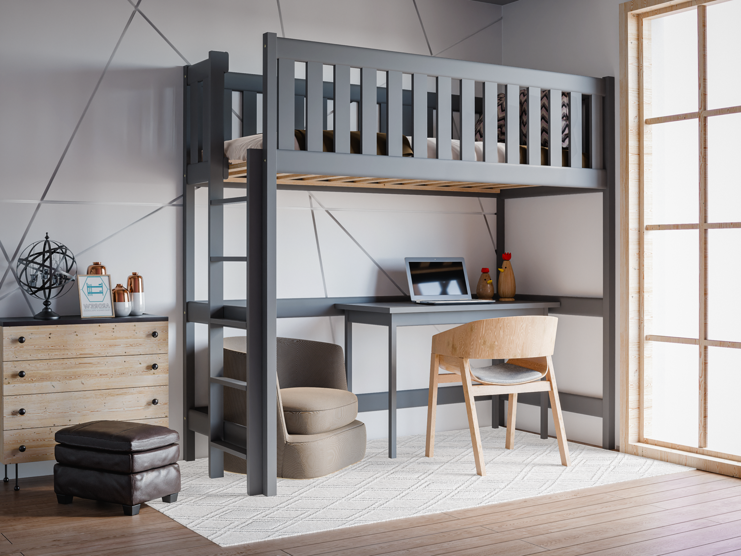 Υπερυψωμένο Κρεβάτι Leon με Πλαϊνή Σκάλα από μασίφ ξύλο Graphite 90×200cm (Δώρο 10% Έκπτωση στo Στρώμα)