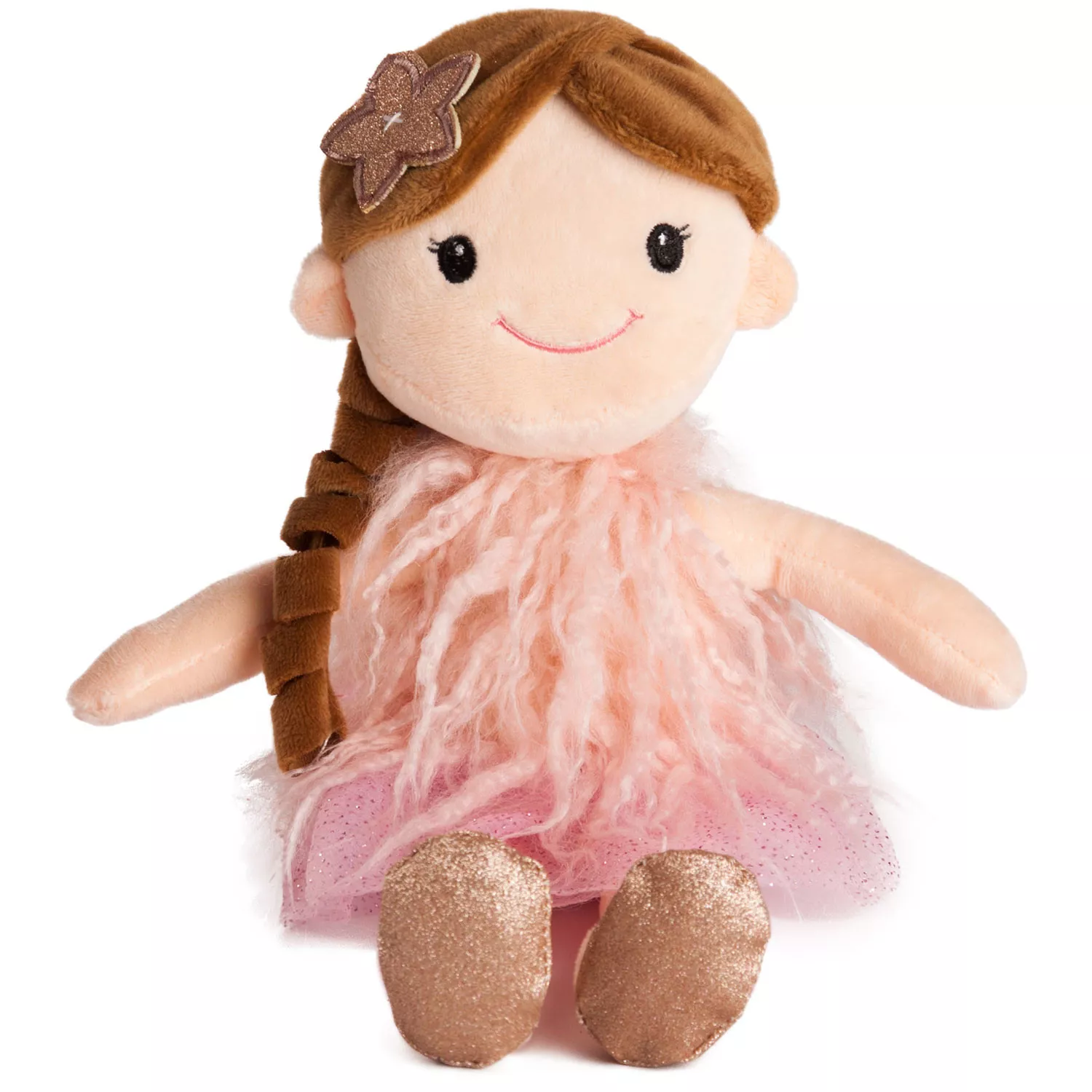 Η κούκλα είναι ντυμένη με εντυπωσιακό ροζ φόρεμα με τούλινη φούστα, δημιουργώντας μια χαριτωμένη και κομψή εμφάνιση. Το μέγεθός της είναι ιδανικό για μικρά παιδικά χεράκια, ώστε να μπορεί το παιδί να τη μεταφέρει εύκολα στο παιχνίδι, στη βόλτα ή στον ύπνο.
