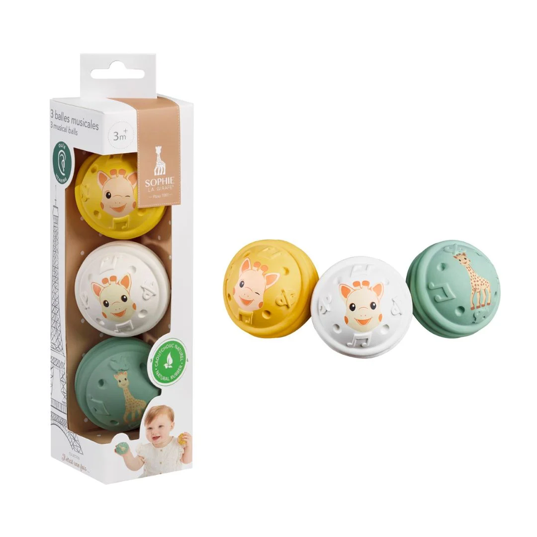 Οι 3 μουσικές μπαλίτσες της Σόφι, είναι κατασκευασμένες από 100% φυσικό καουτσούκ, είναι πολύ ελαφριές και εύκολες στο πιάσιμο!