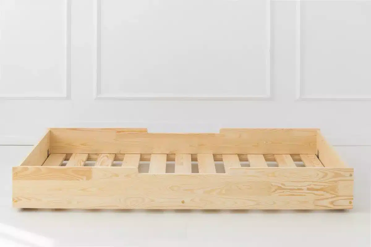 Επιπλέον, το πρακτικό συρτάρι στο κάτω μέρος λειτουργεί ως δεύτερο κρεβάτι, προσφέροντας μια ιδανική λύση για τη φιλοξενία φίλων ή για αδέλφια. Με μία απλή κίνηση, το συρόμενο κρεβάτι ανοίγει εύκολα και δημιουργεί έναν επιπλέον χώρο ύπνου χωρίς να καταλαμβάνει επιπλέον χώρο στο δωμάτιο.