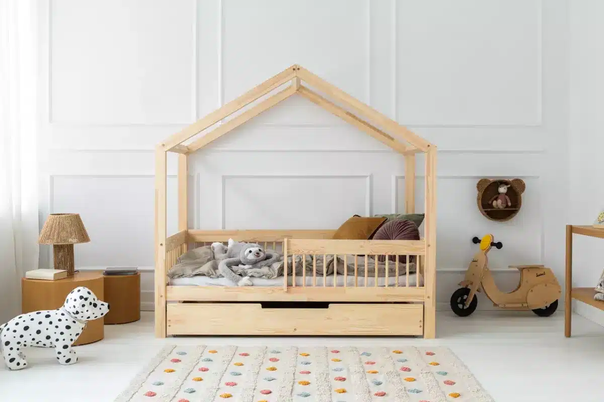 Δημιουργήστε το πιο ονειρεμένο παιδικό δωμάτιο με το Κρεβάτι Montessori Mila RMW 120×200cm, ένα χαμηλό παιδικό κρεβάτι με μοναδικό σχέδιο σπιτάκι που ενθουσιάζει τα παιδιά και δημιουργεί ένα ζεστό και φιλικό περιβάλλον.
