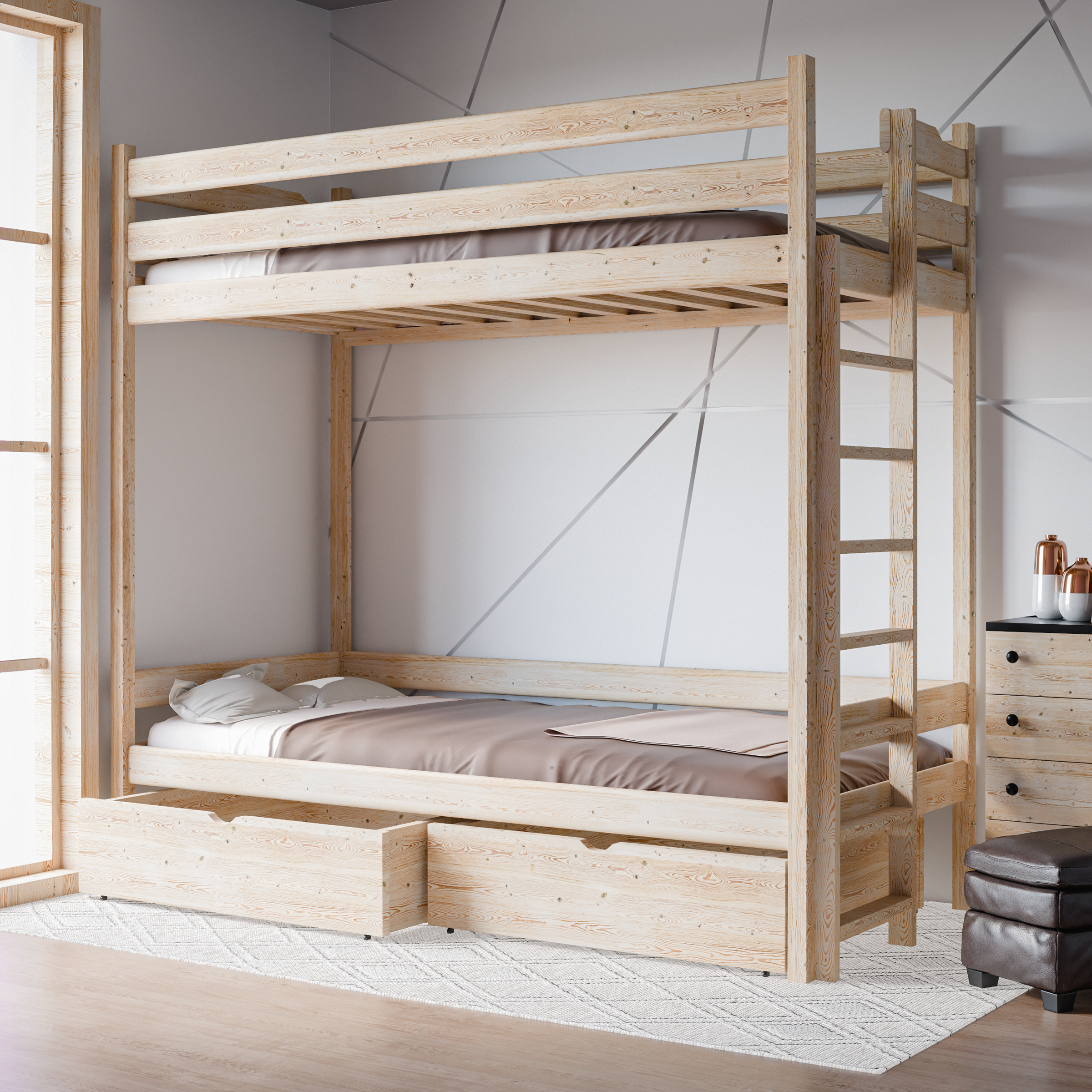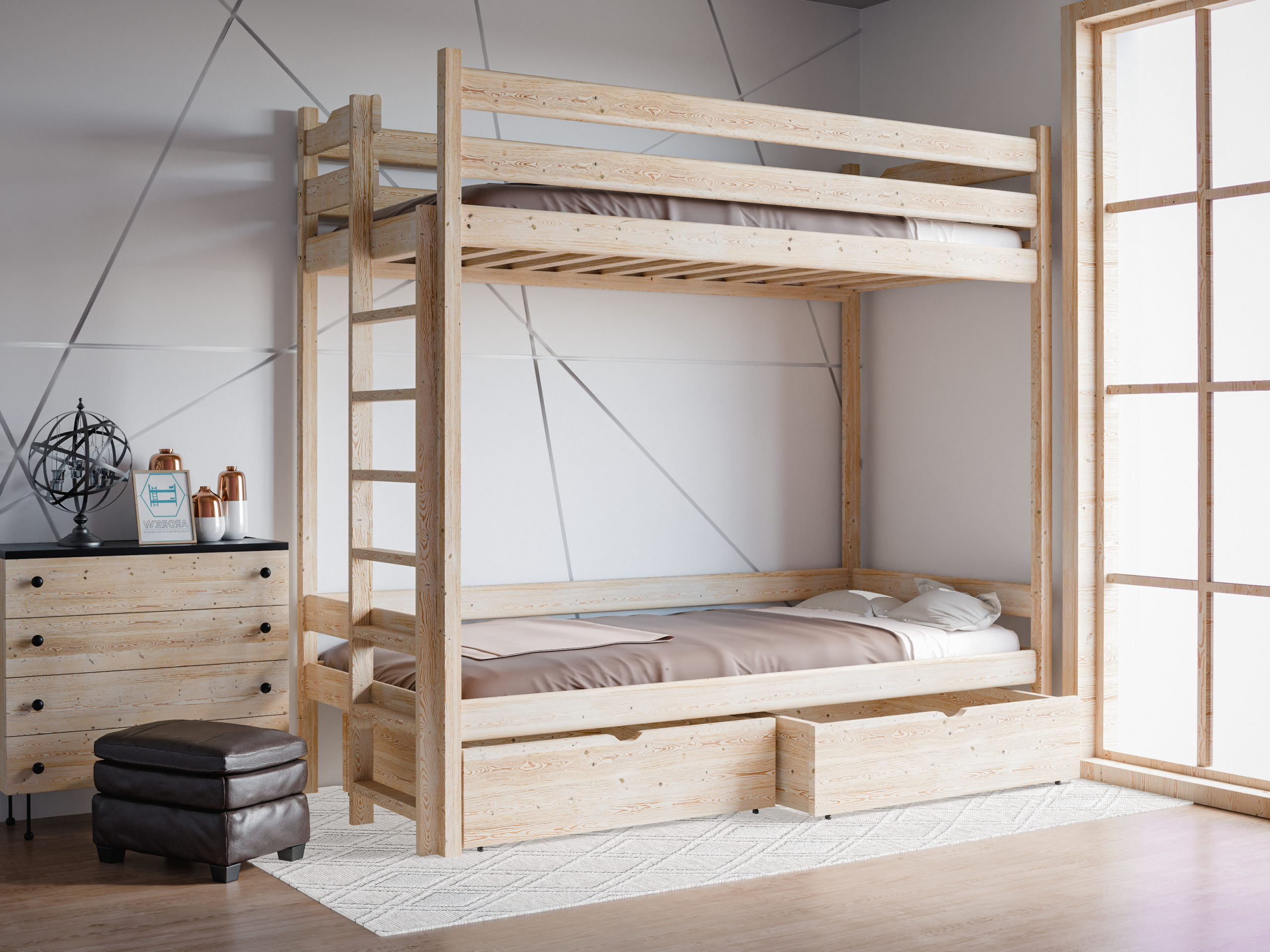 Κουκέτα Antek με Συρτάρια από μασίφ ξύλο Natural 90×200cm (Δώρο 10% Έκπτωση στα Στρώματα)