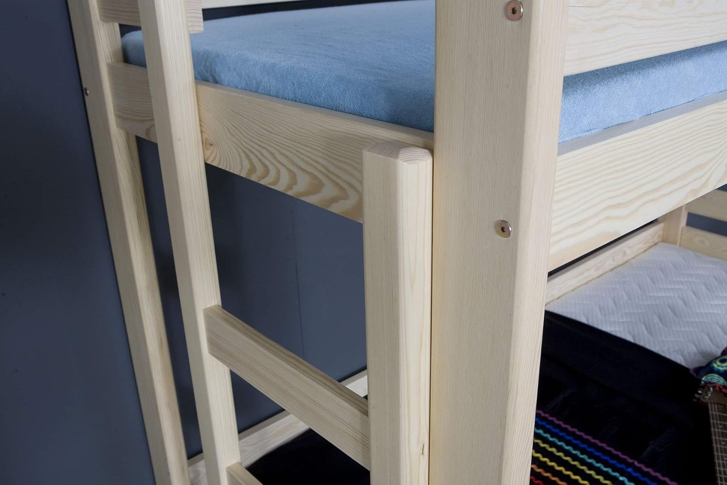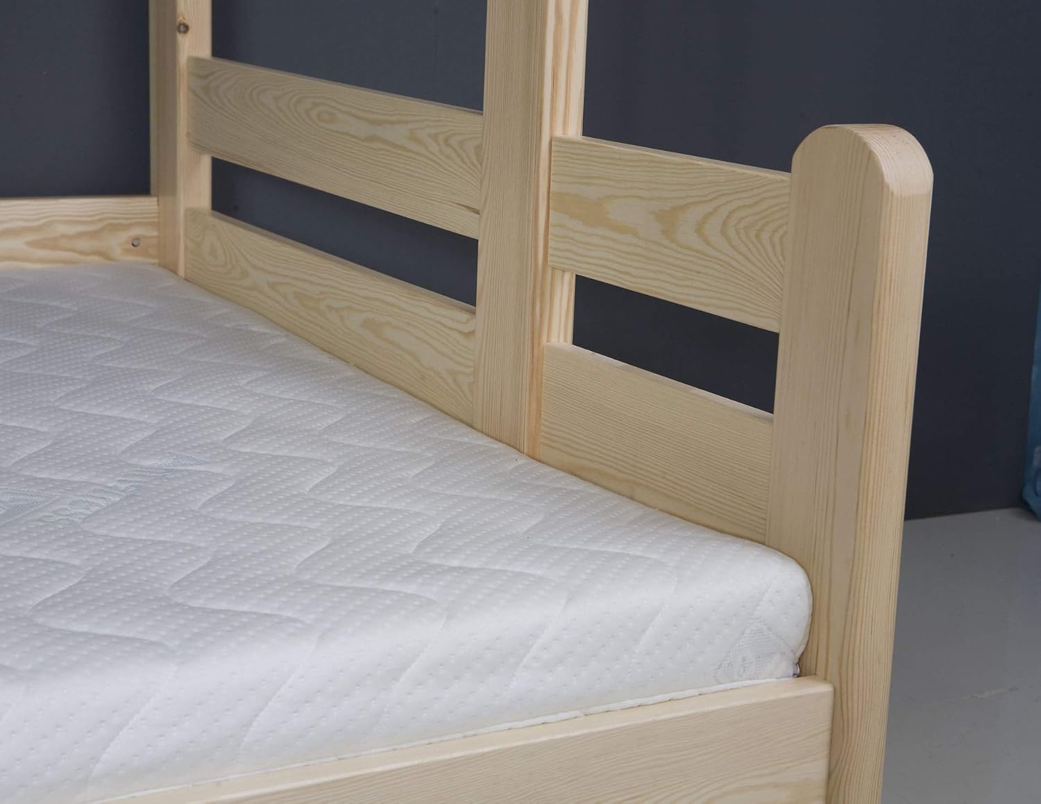 Ταυτόχρονα, η κατασκευή από μασίφ ξύλο πεύκου εξασφαλίζει αντοχή και σταθερότητα, ενώ προσφέρει φυσική ζεστασιά στον χώρο. Με αυτόν τον τρόπο, η κουκέτα συνδυάζει πρακτικότητα, ασφάλεια και διαχρονική ποιότητα.