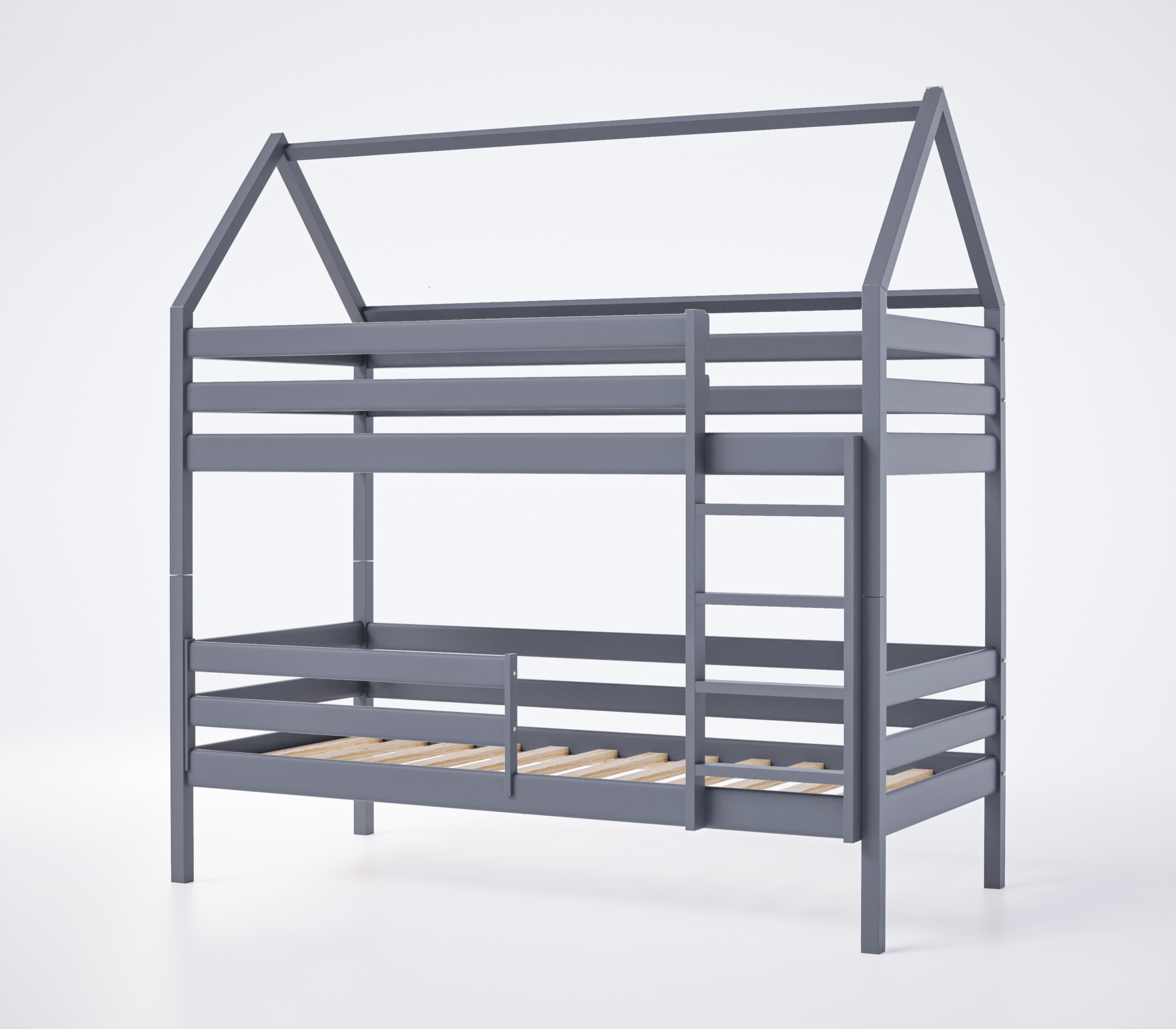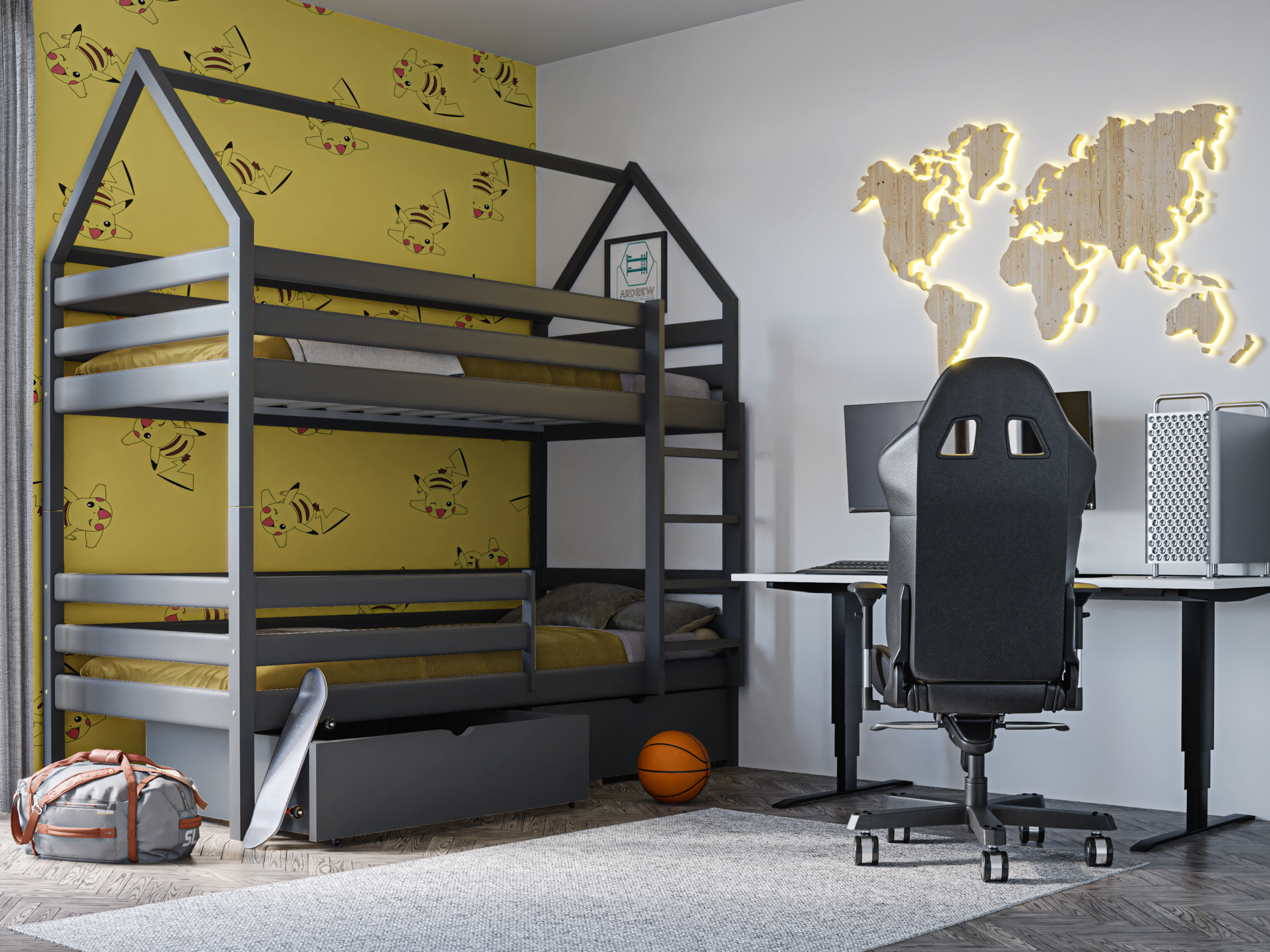 Κουκέτα Σπιτάκι Dawid με Συρτάρια από μασίφ ξύλο Graphite 90×200cm (Δώρο 10% Έκπτωση στα Στρώματα)