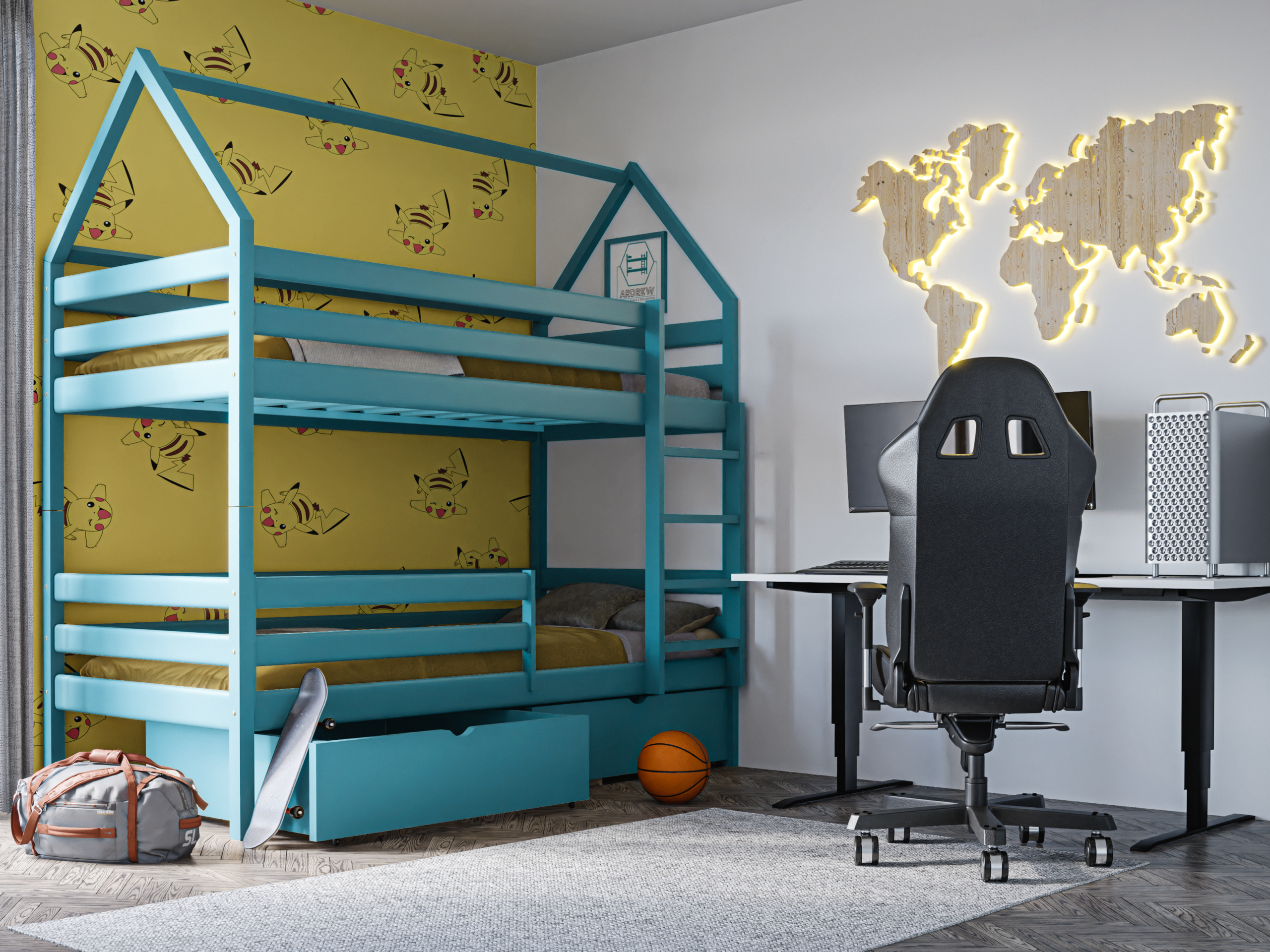 Κουκέτα Σπιτάκι Dawid με Συρτάρια από μασίφ ξύλο Blue 90×200cm (Δώρο 10% Έκπτωση στα Στρώματα)