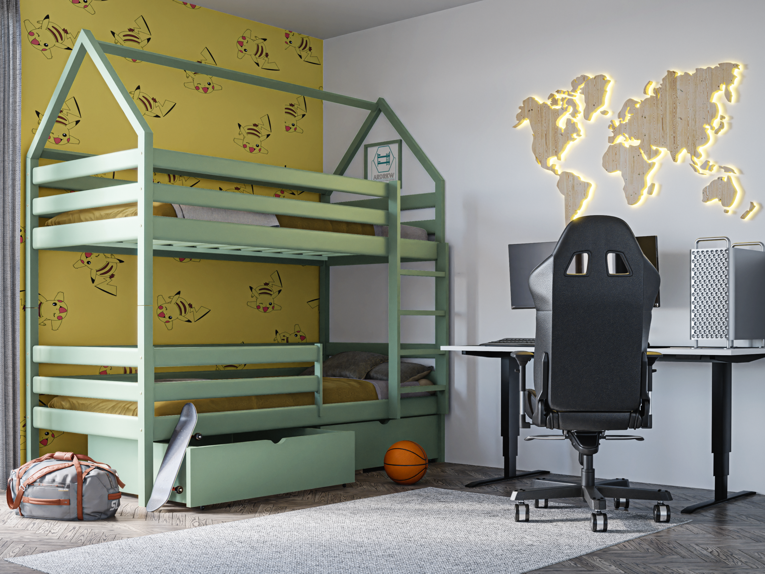 Κουκέτα Σπιτάκι Dawid με Συρτάρια από μασίφ ξύλο Mint 90×200cm (Δώρο 10% Έκπτωση στα Στρώματα)