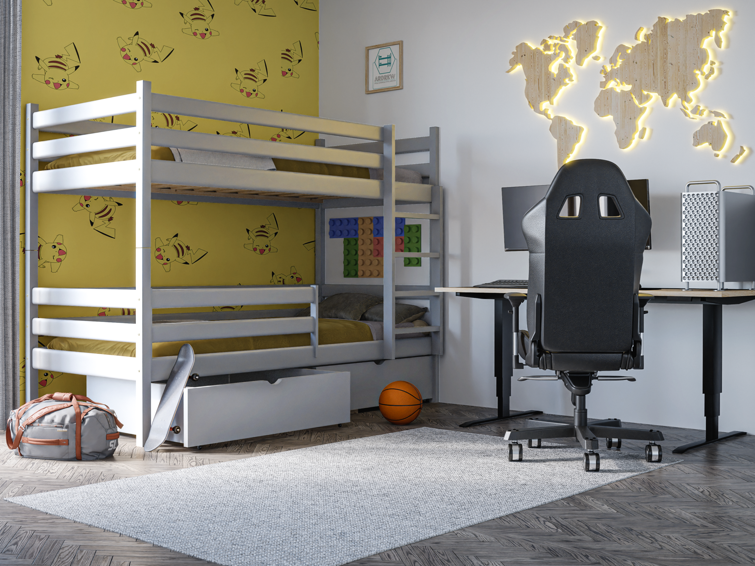 Η κουκέτα Dawid White με συρτάρια προσφέρει άνετο και ασφαλή ύπνο για δύο παιδιά, ενώ παράλληλα βοηθά να οργανώσετε καλύτερα τον χώρο χάρη στους πρακτικούς αποθηκευτικούς χώρους. Έτσι, διατηρείτε το παιδικό δωμάτιο τακτοποιημένο και λειτουργικό.