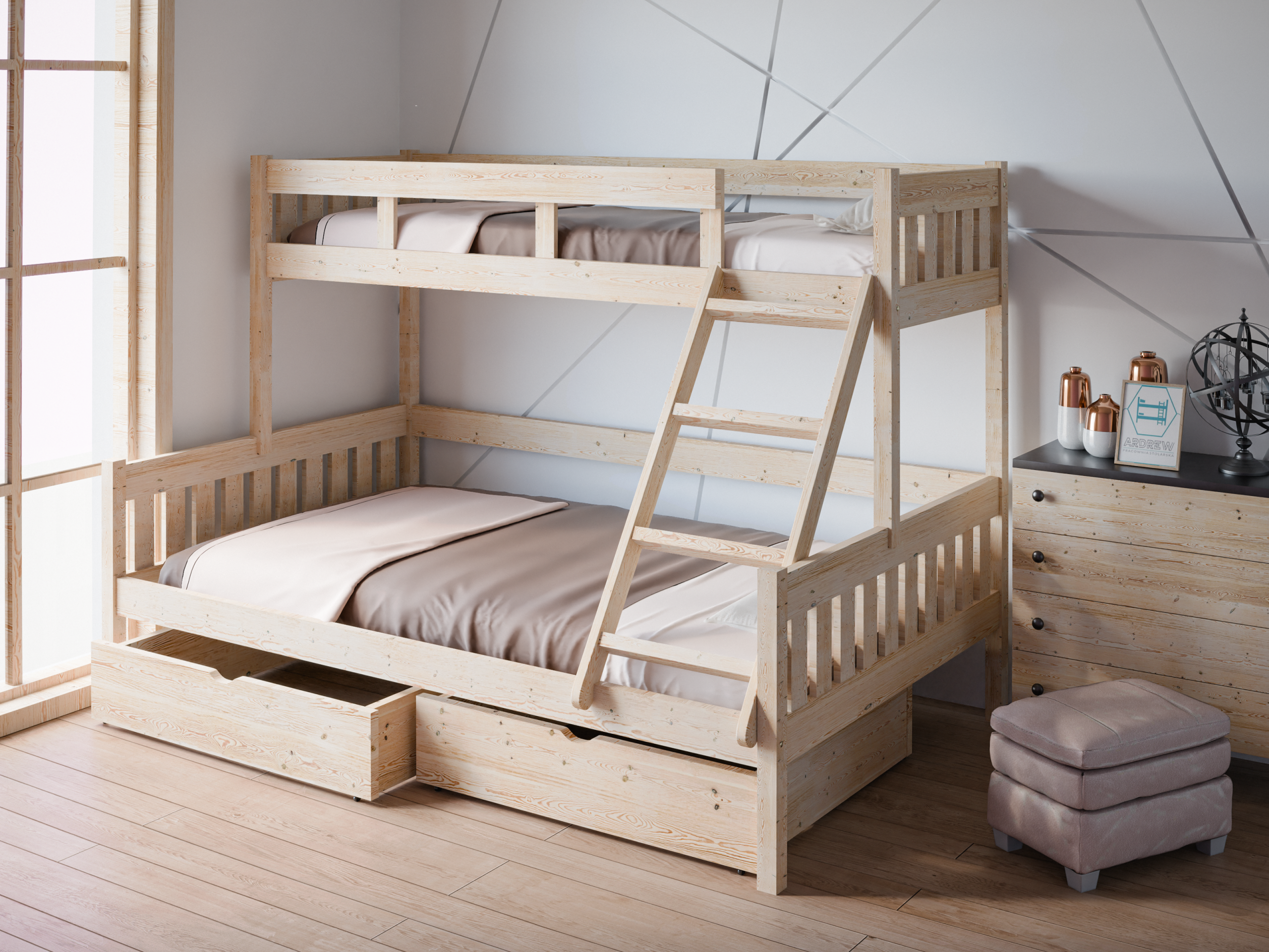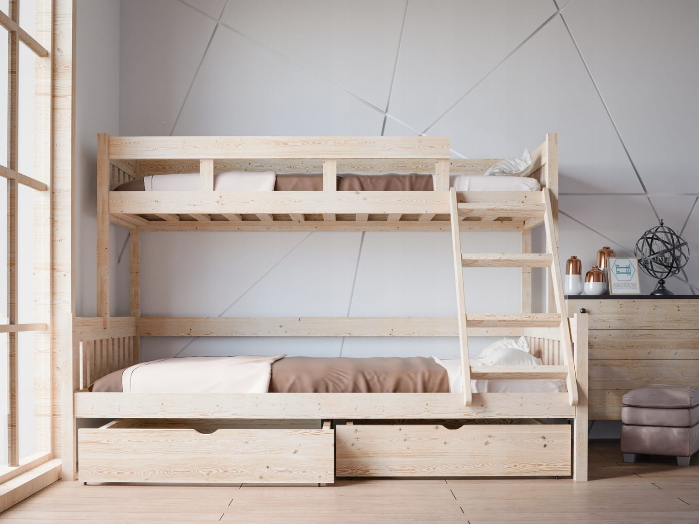 Κουκέτα Edek με Συρτάρια Μονή – Ημίδιπλη από μασίφ ξύλο Natural 90/120×200cm