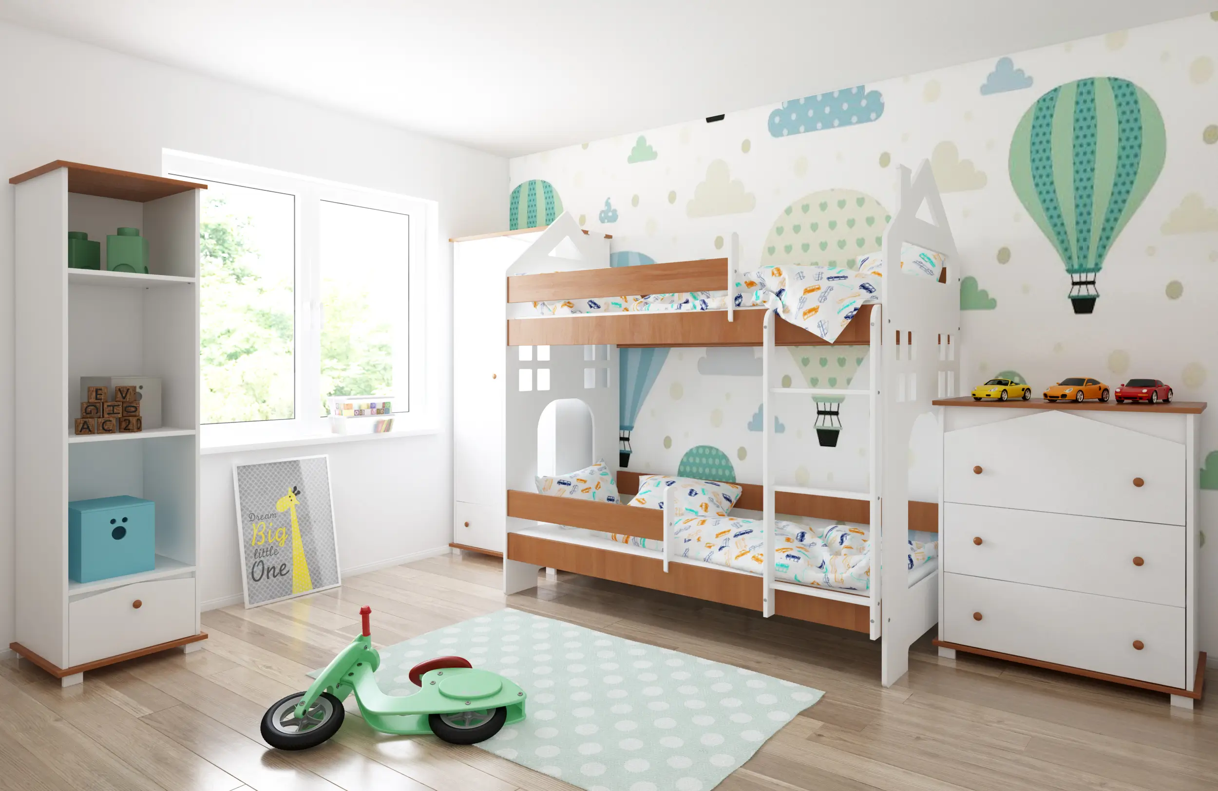 Η κουκέτα House για δύο παιδιά προσφέρει μια καλαίσθητη και λειτουργική λύση για το παιδικό δωμάτιο, καθώς συνδυάζει υπέροχο design και πρακτική διάταξη. Παράλληλα, η αισθητική της ταιριάζει εύκολα σε κάθε ύφος διακόσμησης, από κλασικό έως σύγχρονο.