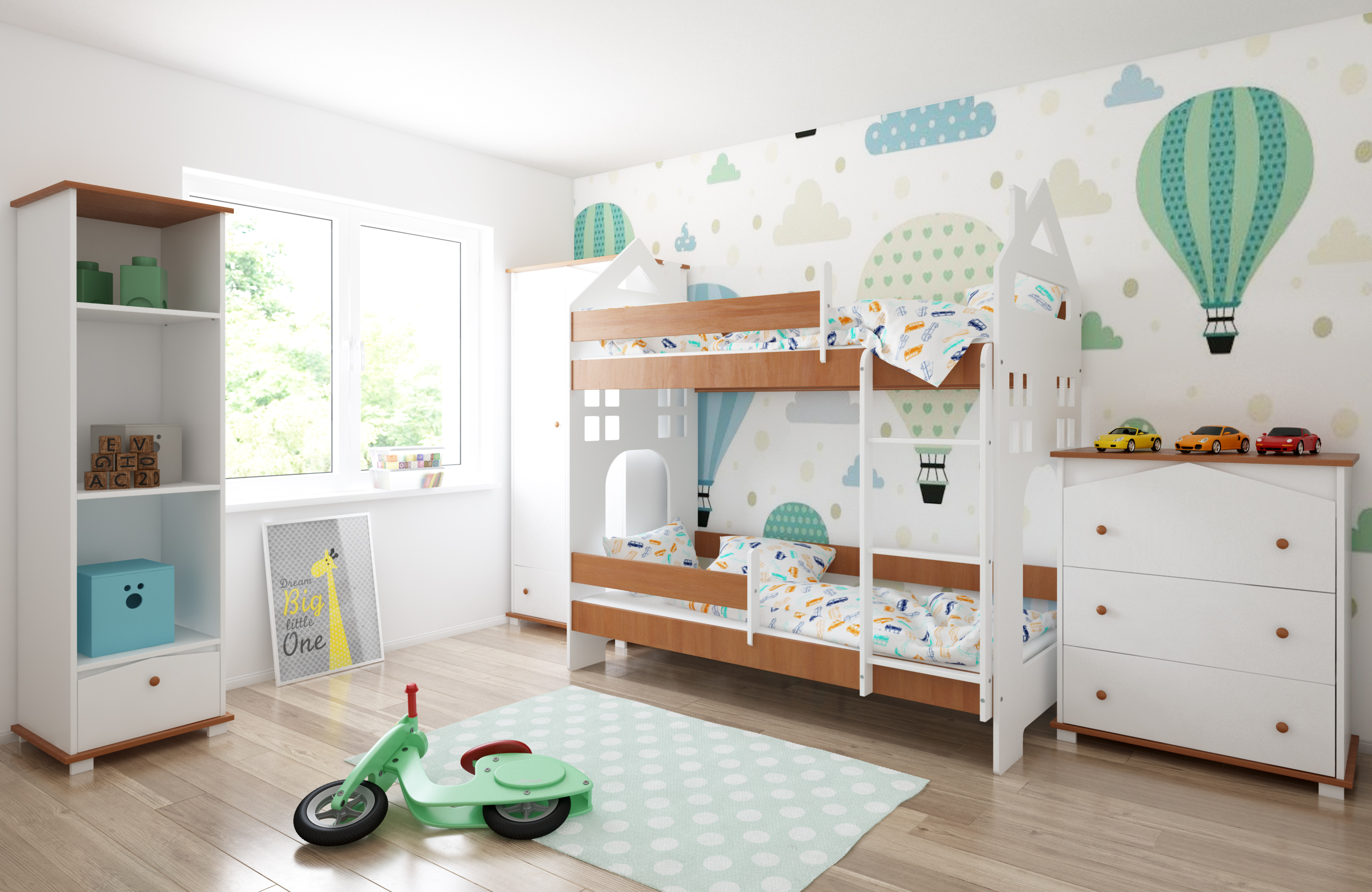 Η κουκέτα House για δύο παιδιά προσφέρει μια καλαίσθητη και λειτουργική λύση για το παιδικό δωμάτιο, καθώς συνδυάζει υπέροχο design και πρακτική αξιοποίηση του χώρου. Παράλληλα, ο σύγχρονος σχεδιασμός της ταιριάζει εύκολα σε κάθε ύφος διακόσμησης, από κλασικό έως μοντέρνο.