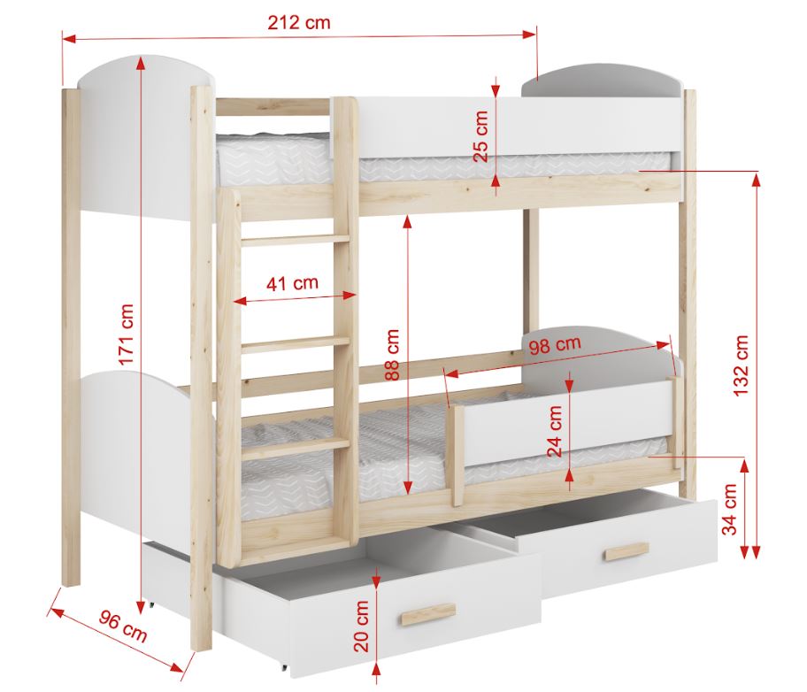 • Εξωτερική Διάσταση Κουκέτας: Μήκος 212cm x Πλάτος 96cm x Ύψος 171cm