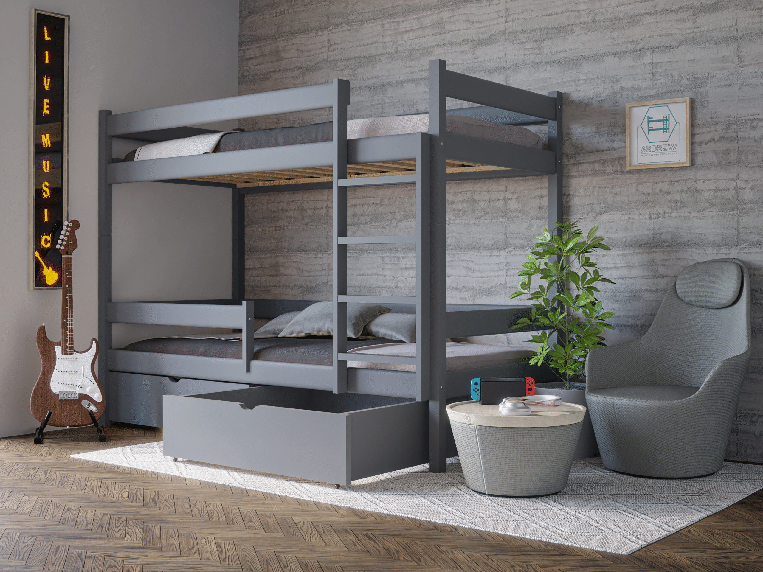 Κουκέτα Marcel με Συρτάρια από μασίφ ξύλο Grey 90×200cm (Δώρο 10% Έκπτωση στα Στρώματα)