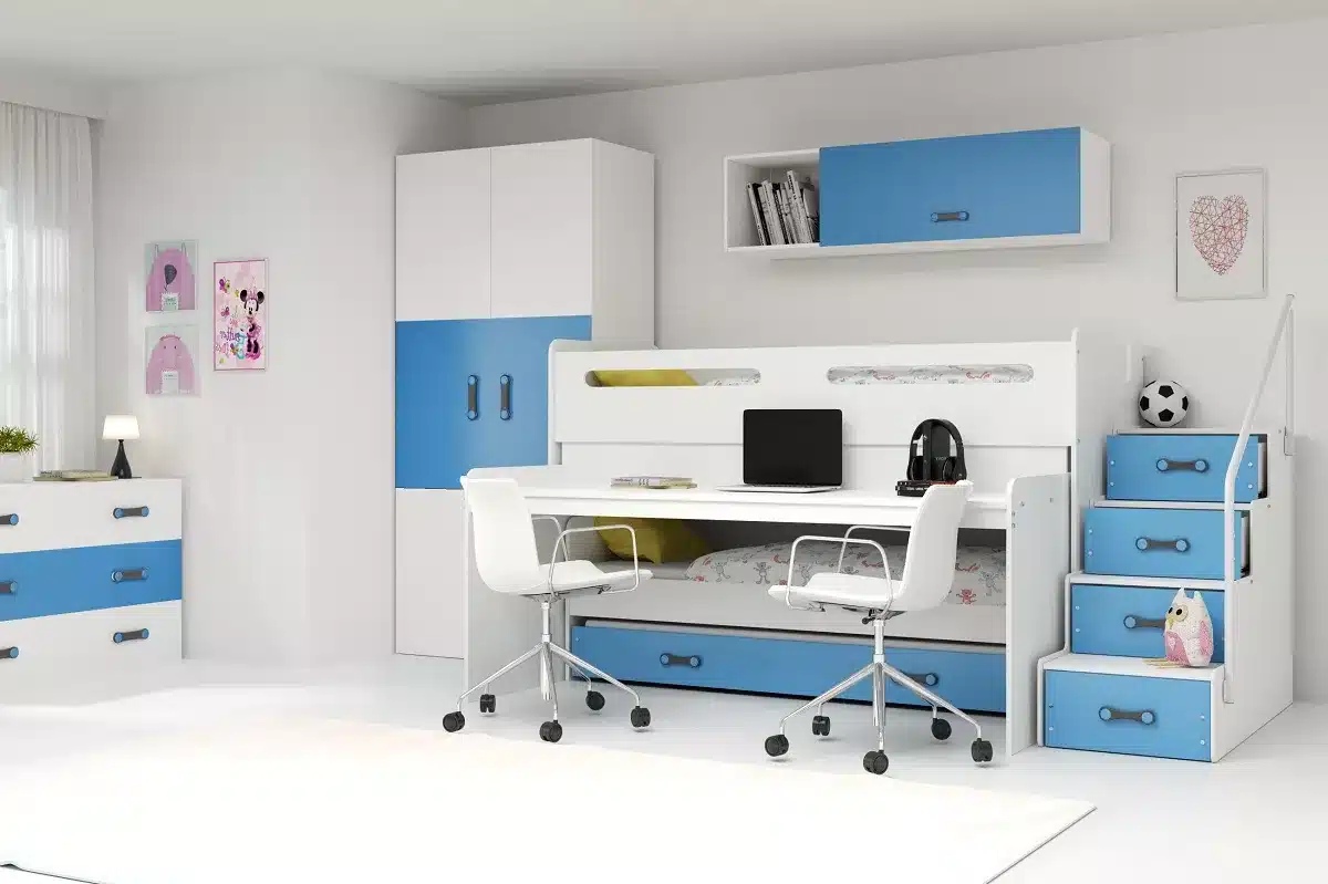 Η Κουκέτα Max Plus 1 με Γραφείο προσφέρει μία ολοκληρωμένη και έξυπνη λύση για τρία παιδιά στο ίδιο δωμάτιο, ενώ ταυτόχρονα εξοικονομεί πολύτιμο χώρο. Χάρη στο ενσωματωμένο γραφείο, δημιουργείτε άμεσα μία άνετη γωνιά μελέτης, χωρίς να χρειάζεστε επιπλέον έπιπλα.