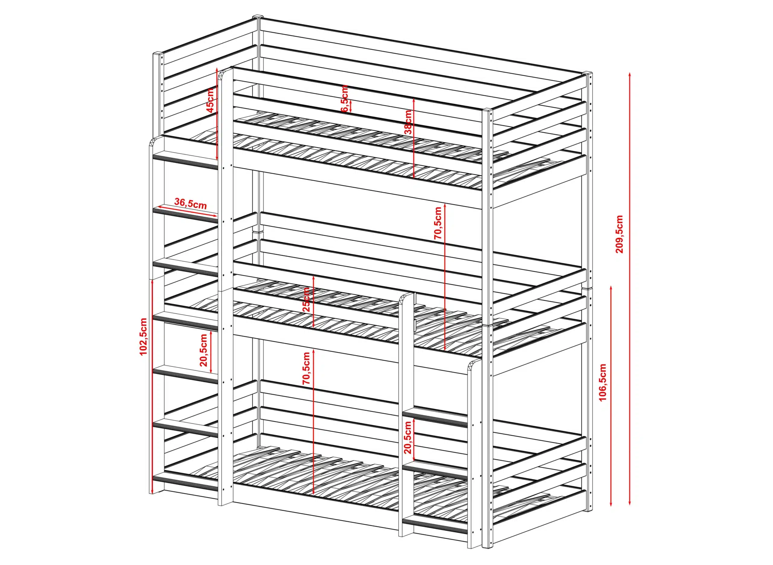 - Εξωτερική Διάσταση Κουκέτας: Μήκος 208cm x Πλάτος 96cm x Ύψος 209,5cm