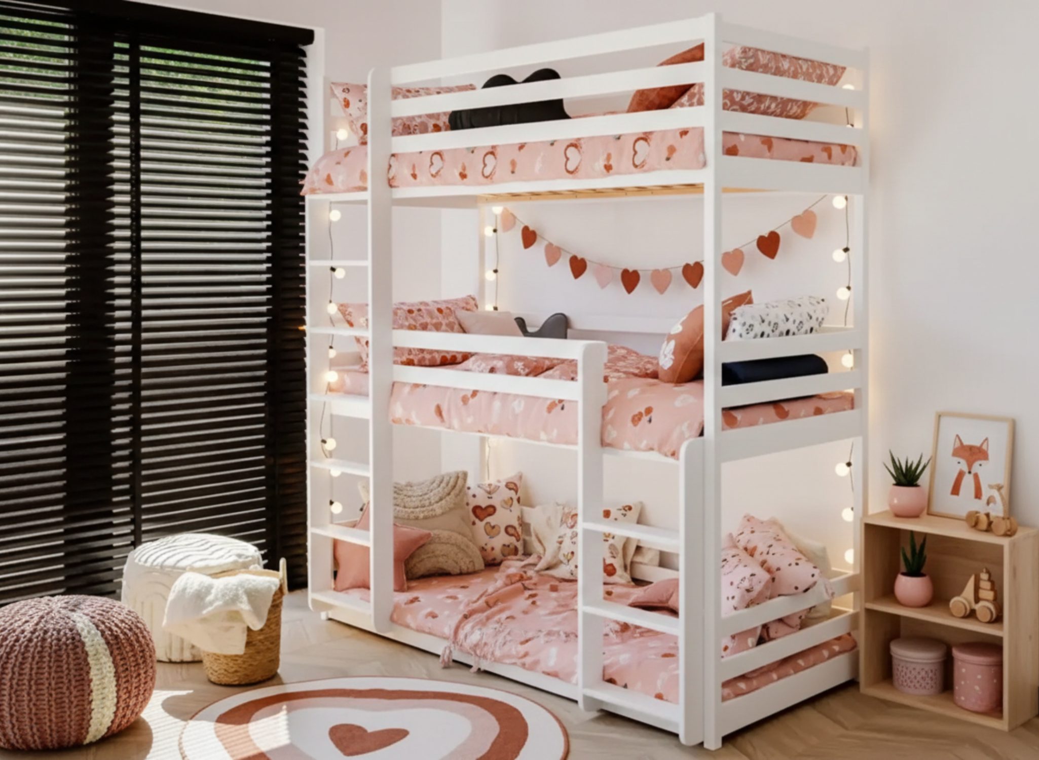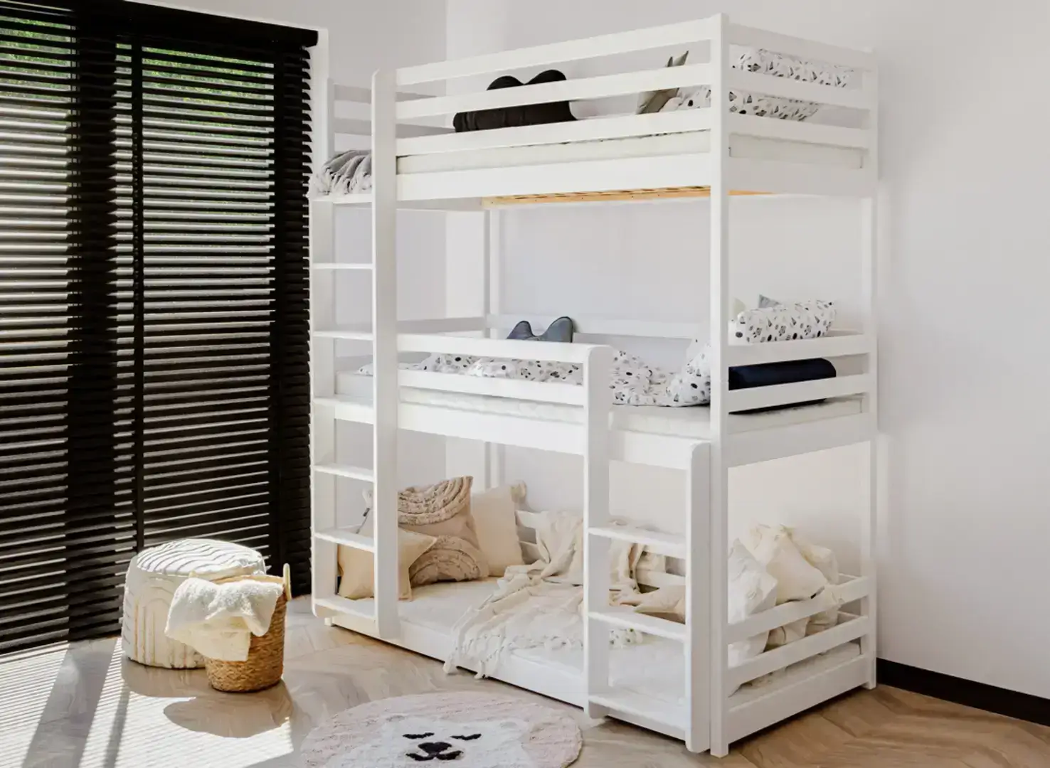 Η κουκέτα Montessori για 3 παιδιά προσφέρει έξυπνη εξοικονόμηση χώρου, ενώ ταυτόχρονα δημιουργεί ένα ασφαλές και λειτουργικό περιβάλλον ύπνου για τα παιδιά. Σχεδιάζει τη διάταξη του δωματίου πρακτικά και, παράλληλα, καλύπτει τις ανάγκες οικογενειών που χρειάζονται τρία παιδικά κρεβάτια σε έναν χώρο.