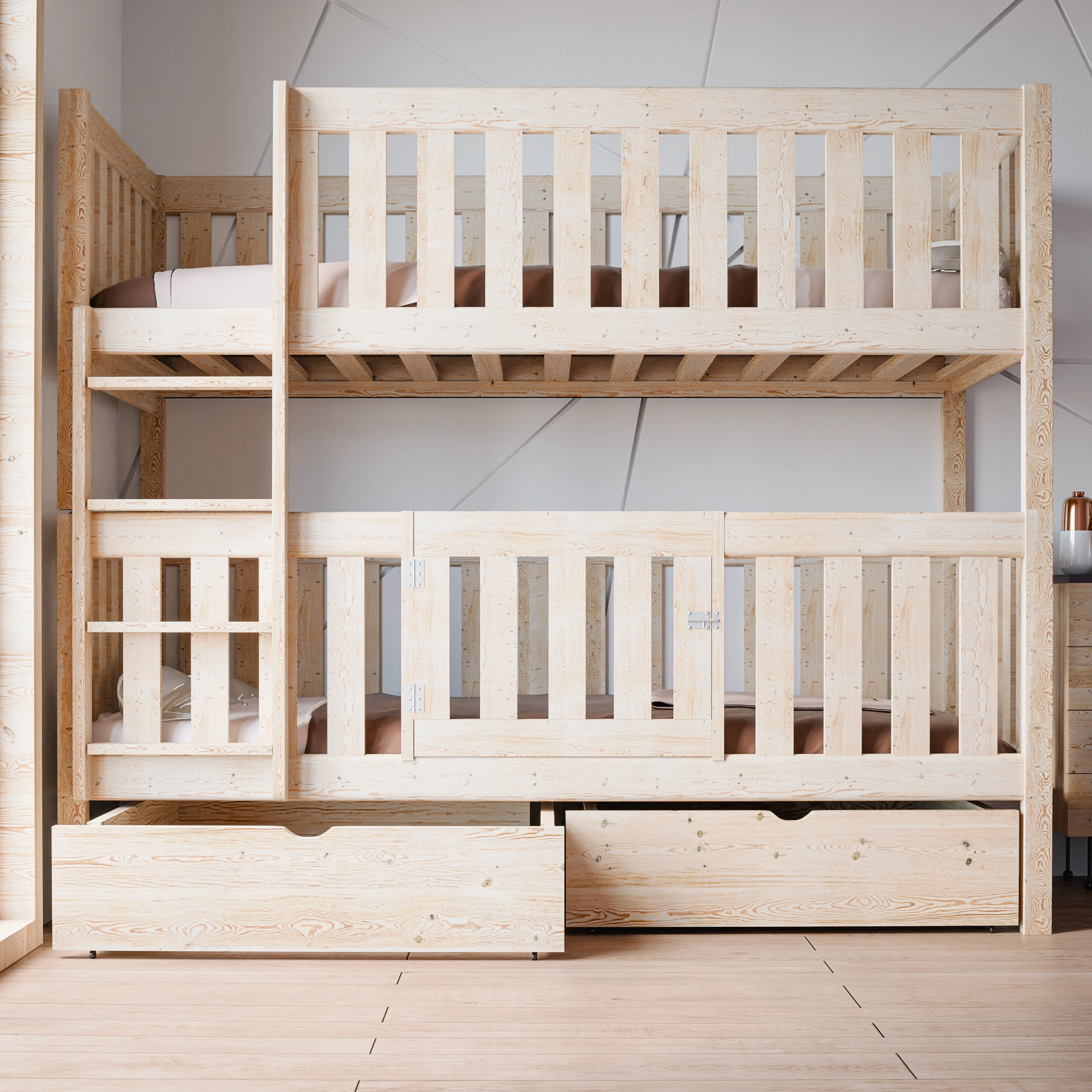 Κουκέτα Olga με Κάγκελα 58cm και Συρτάρια από μασίφ ξύλο Natural 90×200cm (Δώρο 10% Έκπτωση στα Στρώματα)