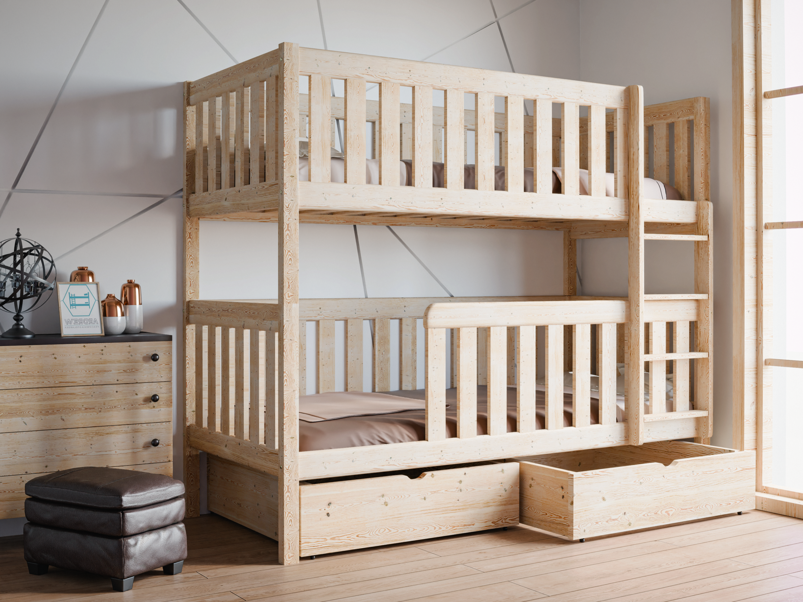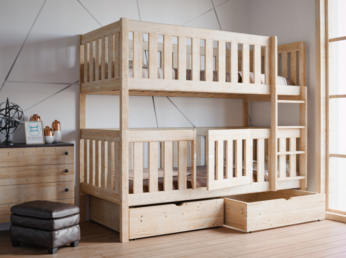 Επιπλέον, η κουκέτα Olga διαθέτει πρακτικά συρτάρια αποθήκευσης, ώστε να οργανώνετε εύκολα ρούχα, παιχνίδια και κλινοσκεπάσματα. Ταυτόχρονα, μπορείτε να επιλέξετε το μοντέλο με πορτούλα ή χωρίς πορτούλα, ανάλογα με τις ανάγκες ασφάλειας και λειτουργικότητας.