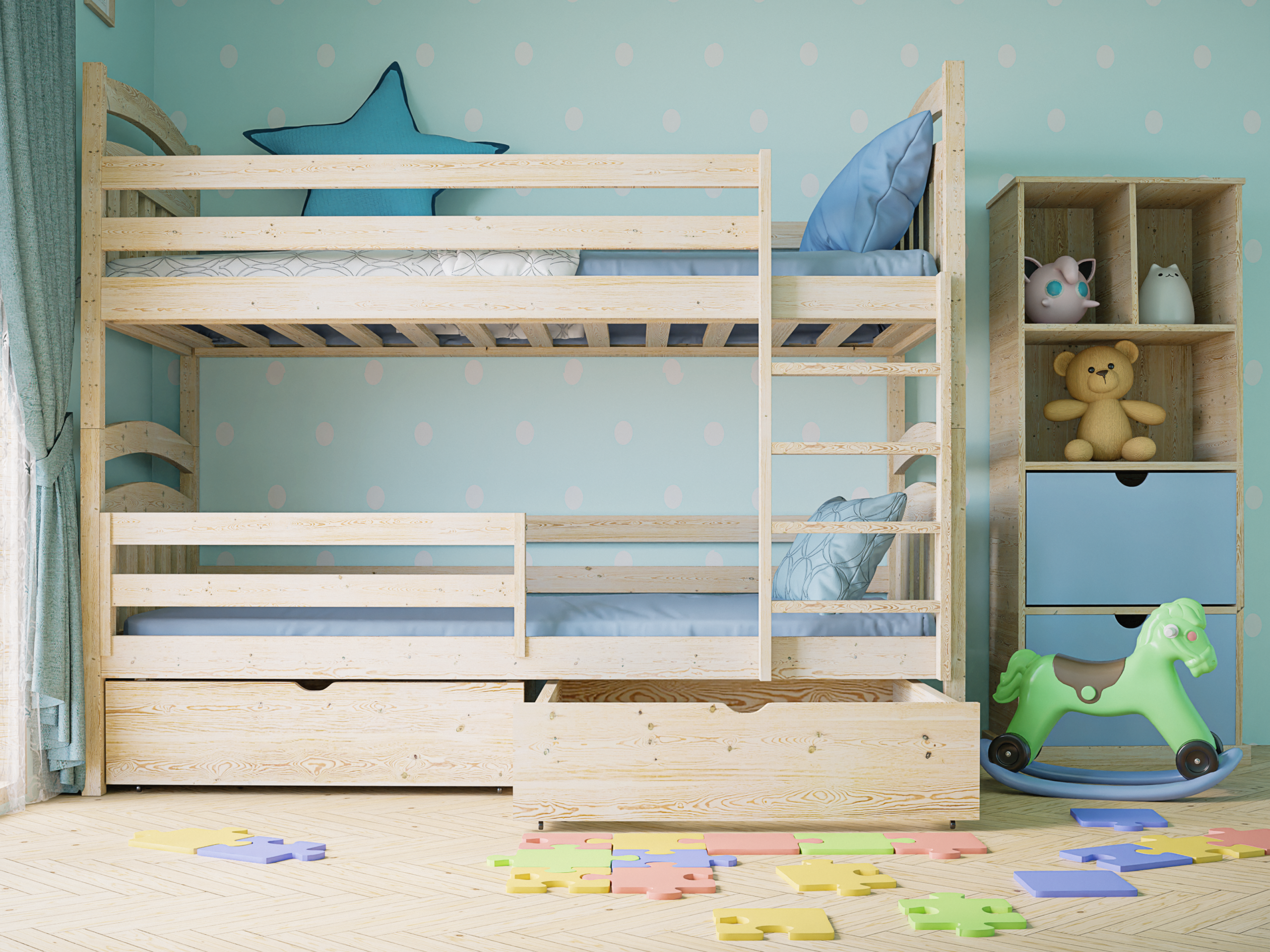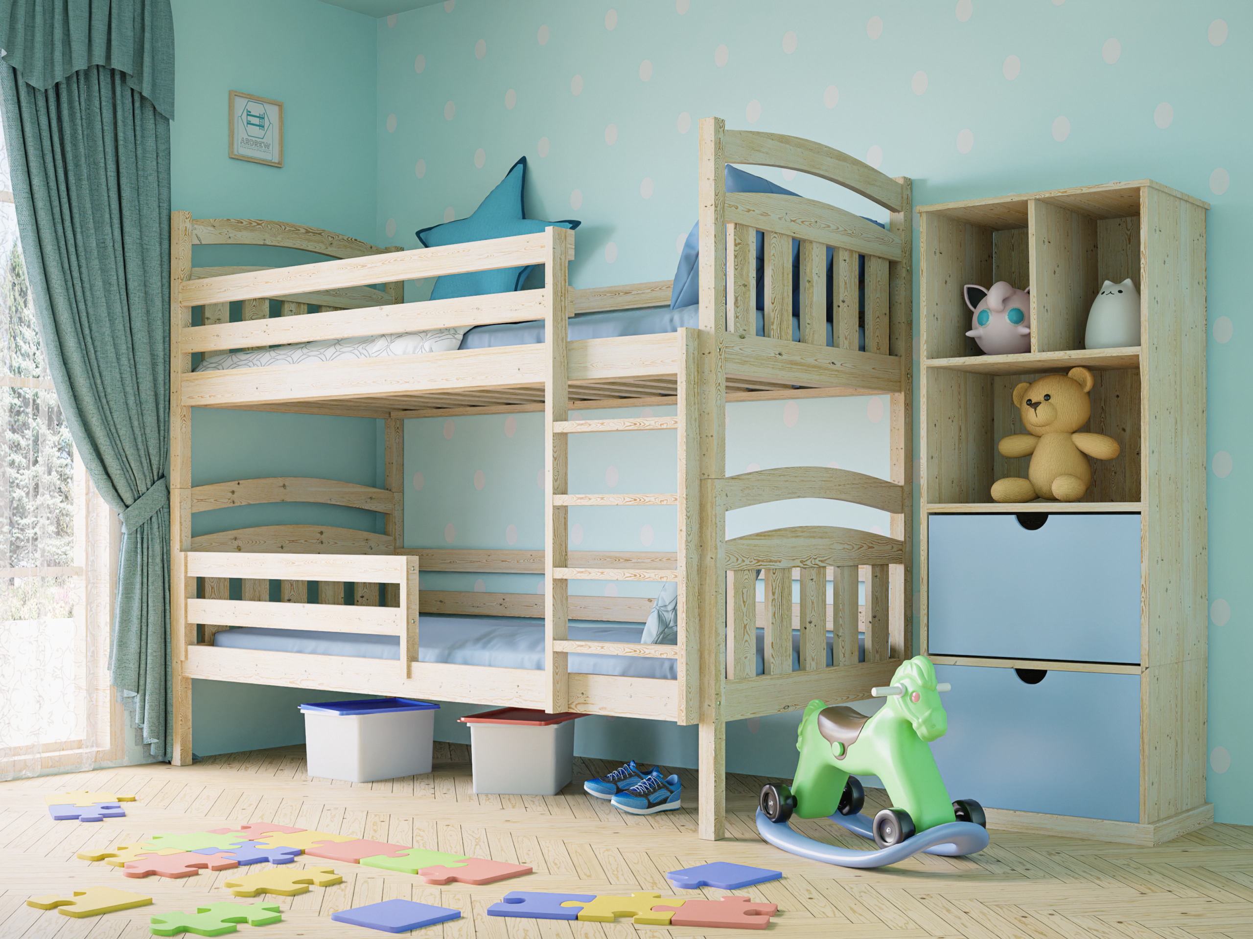 Επιπλέον, κατασκευάζουμε την κουκέτα Sofia από φυσικό ξύλο πεύκου υψηλής ποιότητας και τη βάφουμε με οικολογικές βαφές νερού. Με αυτόν τον τρόπο εξασφαλίζετε αντοχή στον χρόνο, ασφάλεια για τα παιδιά και δυνατότητα επιλογής μέσα από μεγάλη ποικιλία χρωμάτων.