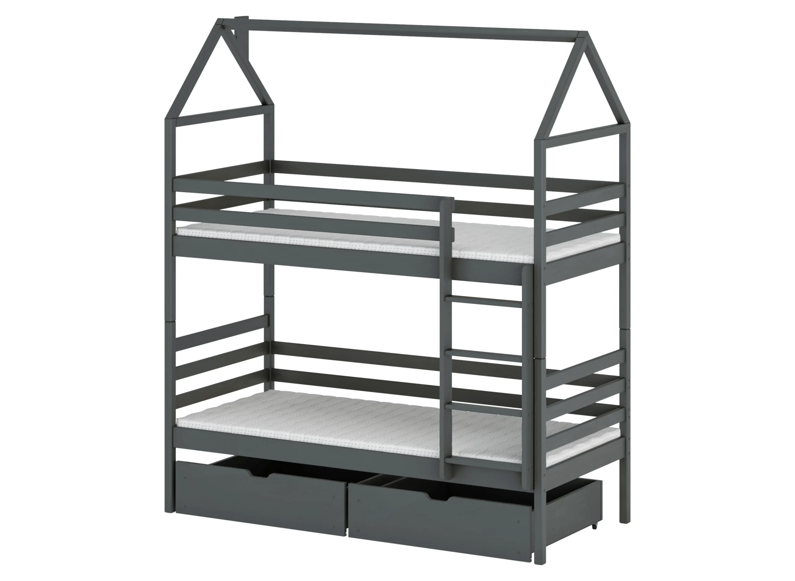 Κουκέτα Σπιτάκι Alex με 2 Συρτάρια Αποθήκευσης από μασίφ ξύλο Graphite 90×200cm (Δώρο 10% Έκπτωση στα Στρώματα)