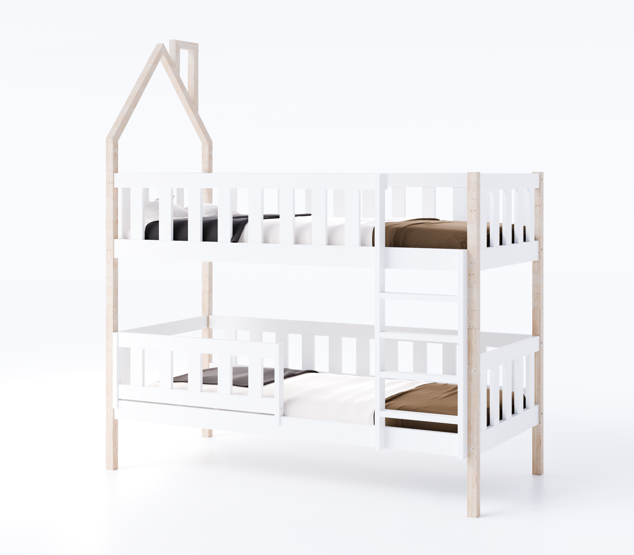 Ανακαλύψτε κουκέτα σπιτάκι Annia House από μασίφ ξύλο πεύκου που χωρίζεται σε δύο μονά κρεβάτια. Συνδυάζει αντοχή, ασφάλεια και ευελιξία για κάθε παιδικό δωμάτιο.