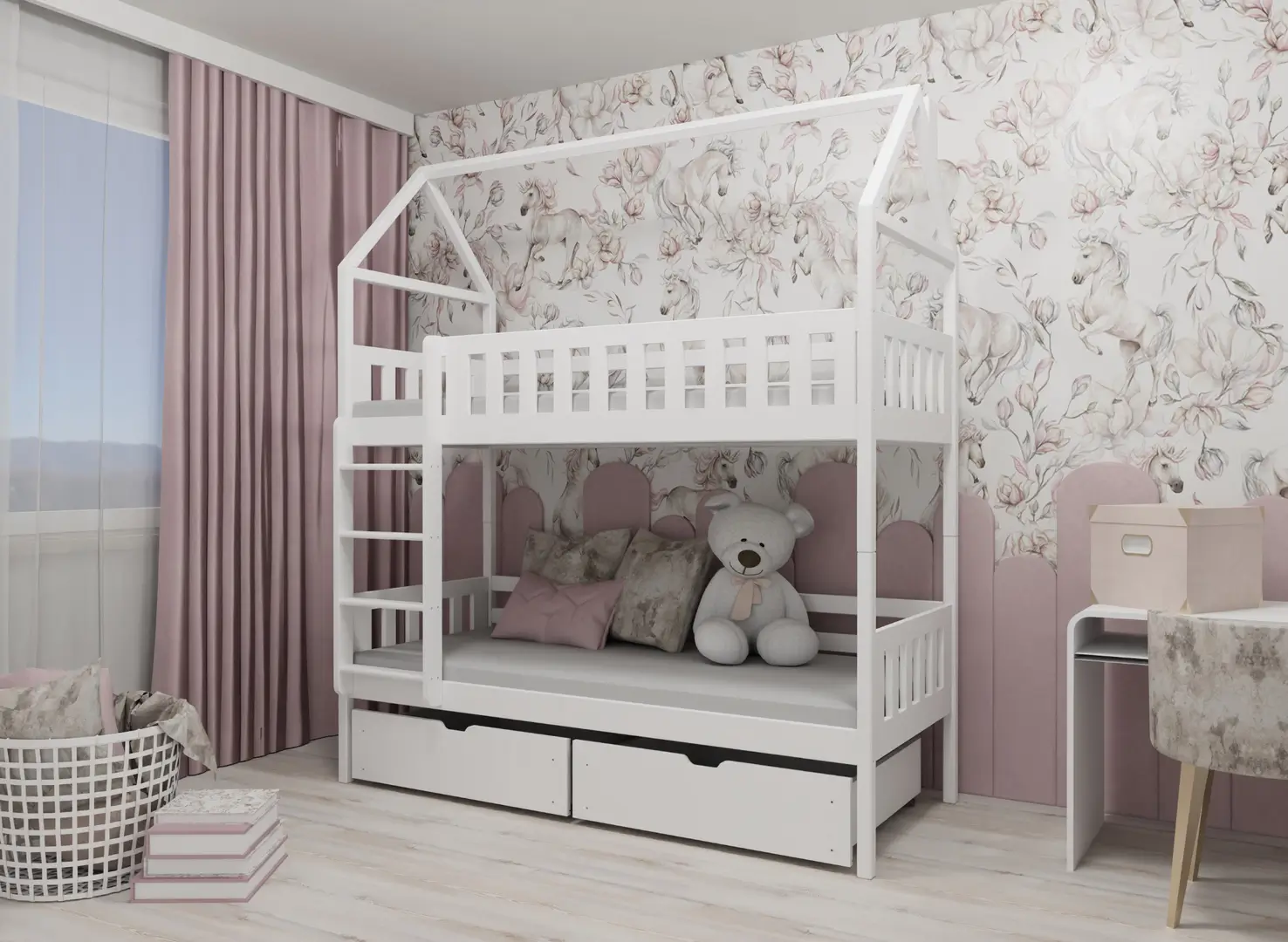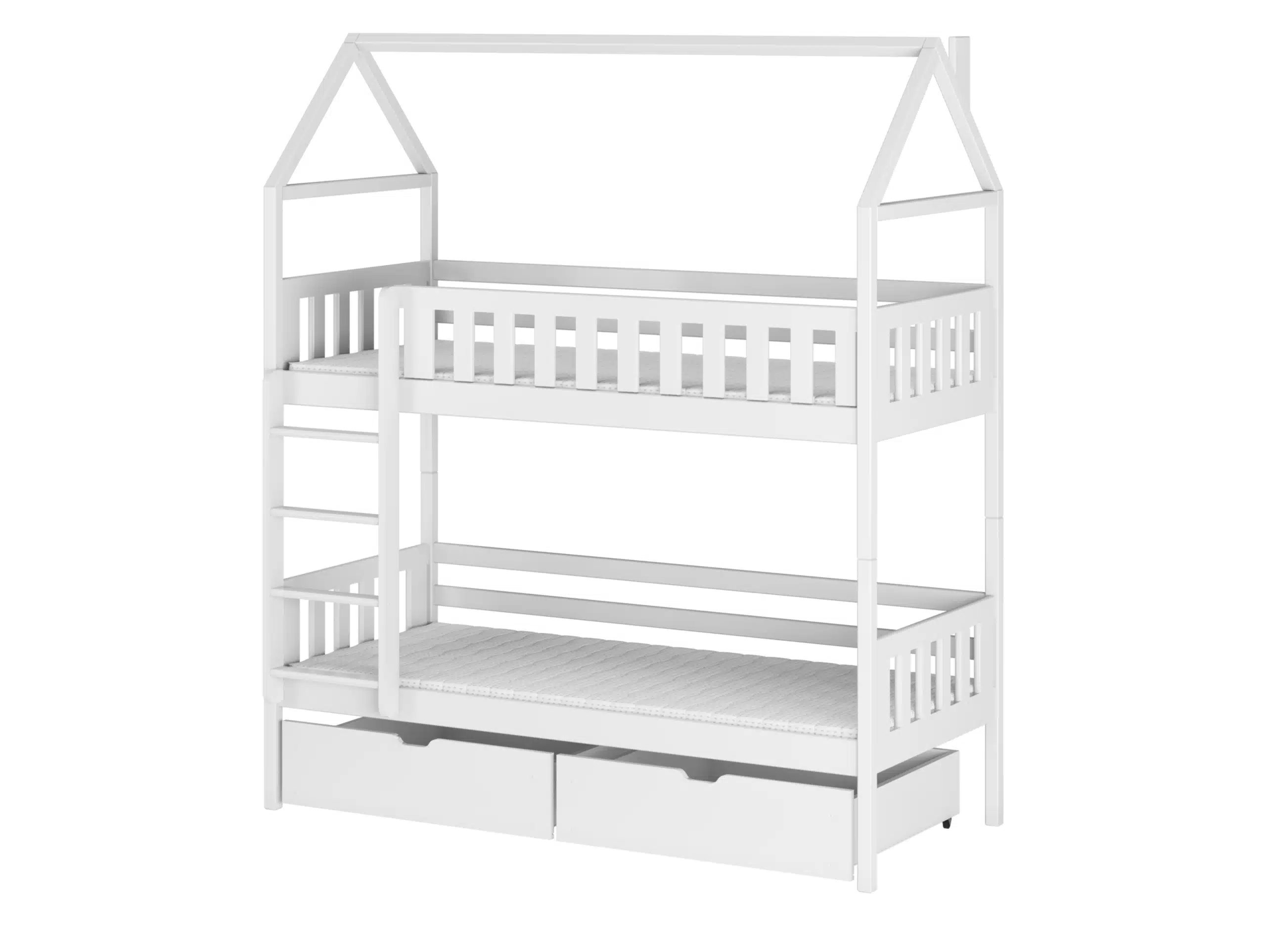 Κουκέτα Σπιτάκι Gaja με 2 Συρτάρια Αποθήκευσης από μασίφ ξύλο White 90×200cm (Δώρο 10% Έκπτωση στα Στρώματα)