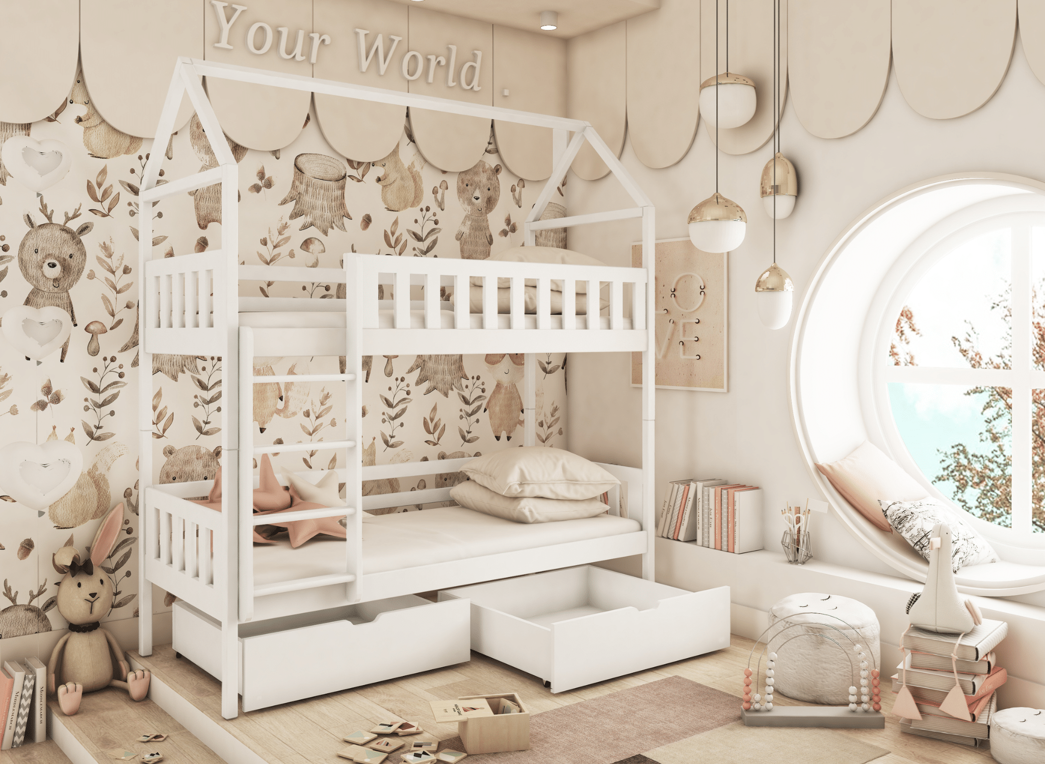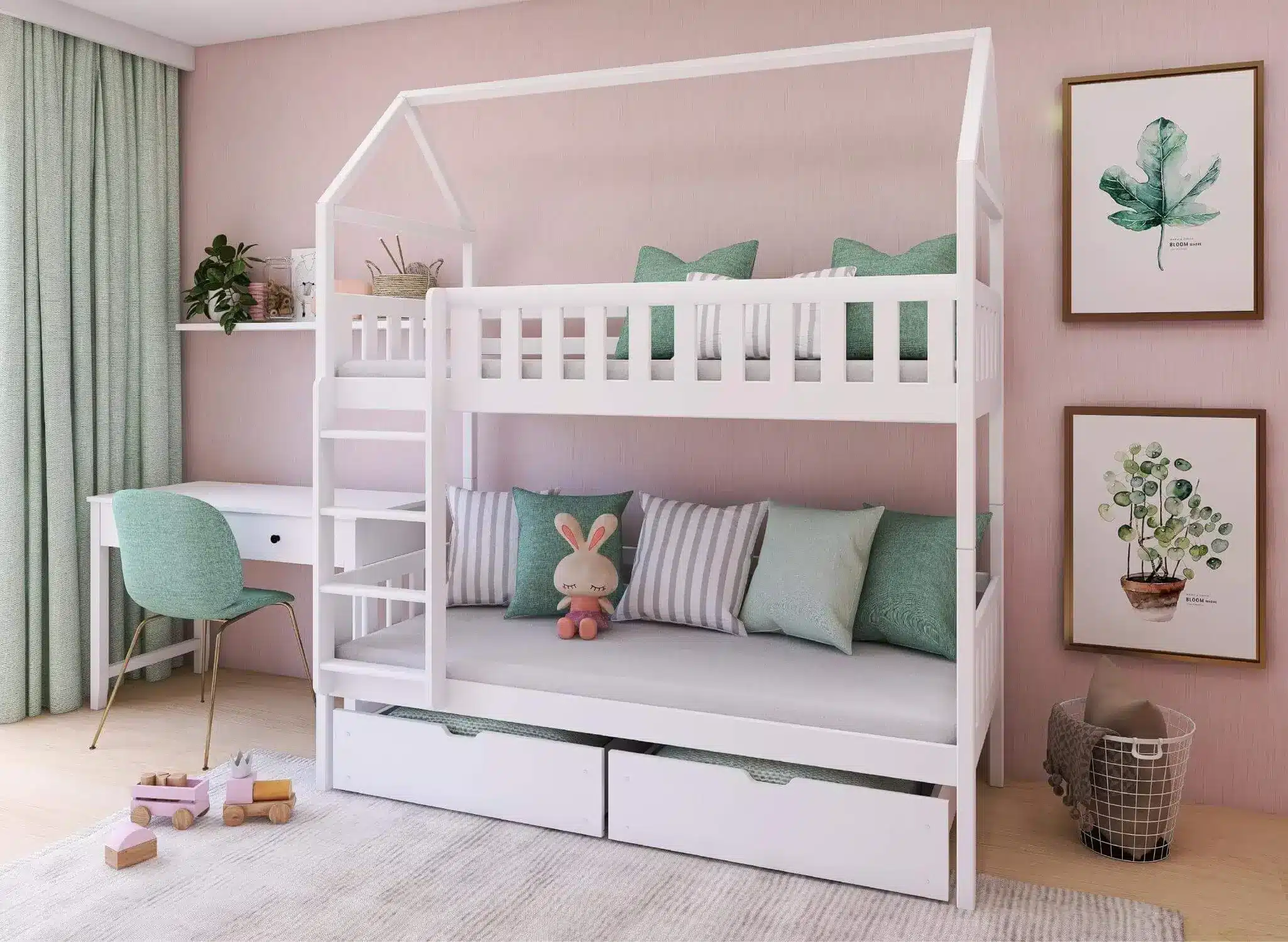 Η κουκέτα σπιτάκι Gaja αποτελεί μια έξυπνη και πρακτική επιλογή για δύο παιδιά στο ίδιο δωμάτιο, καθώς συνδυάζει άνετο ύπνο με λειτουργικό σχεδιασμό. Παράλληλα, ο σχεδιασμός σε μορφή σπιτιού δημιουργεί έναν ζεστό και ευχάριστο χώρο που ενθουσιάζει τα παιδιά.