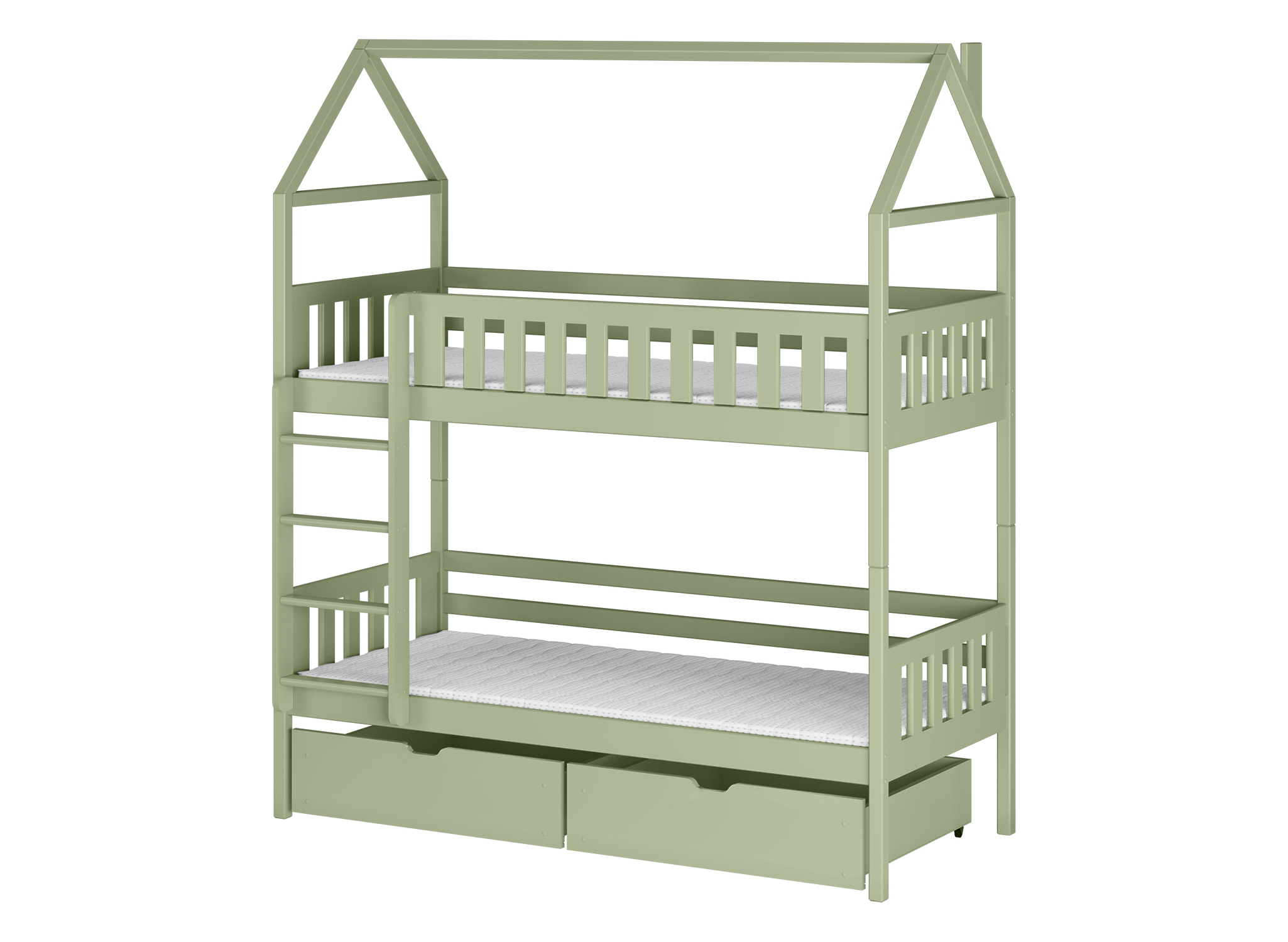 Κουκέτα Σπιτάκι Gaja με 2 Συρτάρια Αποθήκευσης από μασίφ ξύλο Olive 90×200cm (Δώρο 10% Έκπτωση στα Στρώματα)