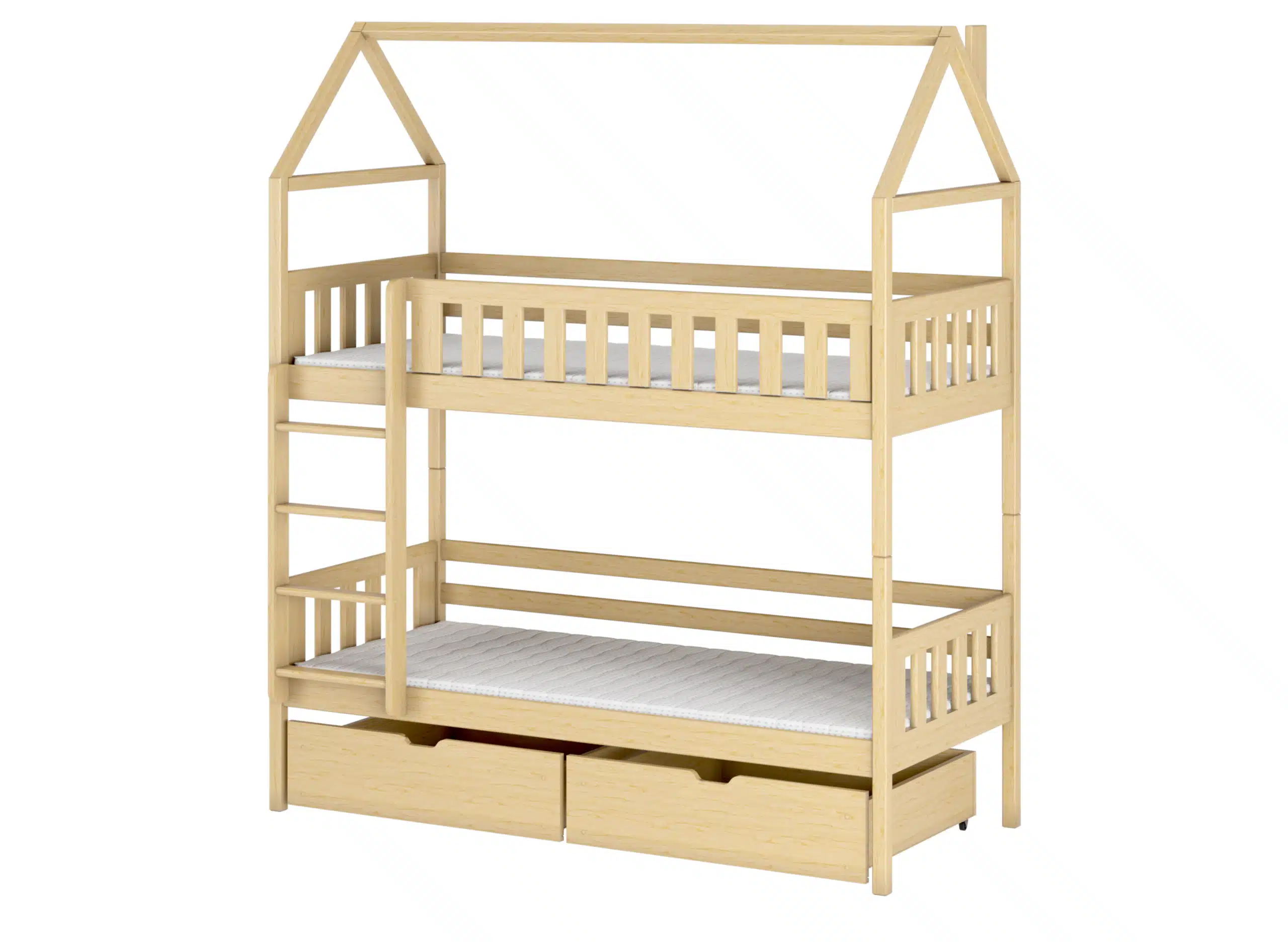 Κουκέτα Σπιτάκι Gaja με 2 Συρτάρια Αποθήκευσης από μασίφ ξύλο Natural 90×200cm (Δώρο 10% Έκπτωση στα Στρώματα)