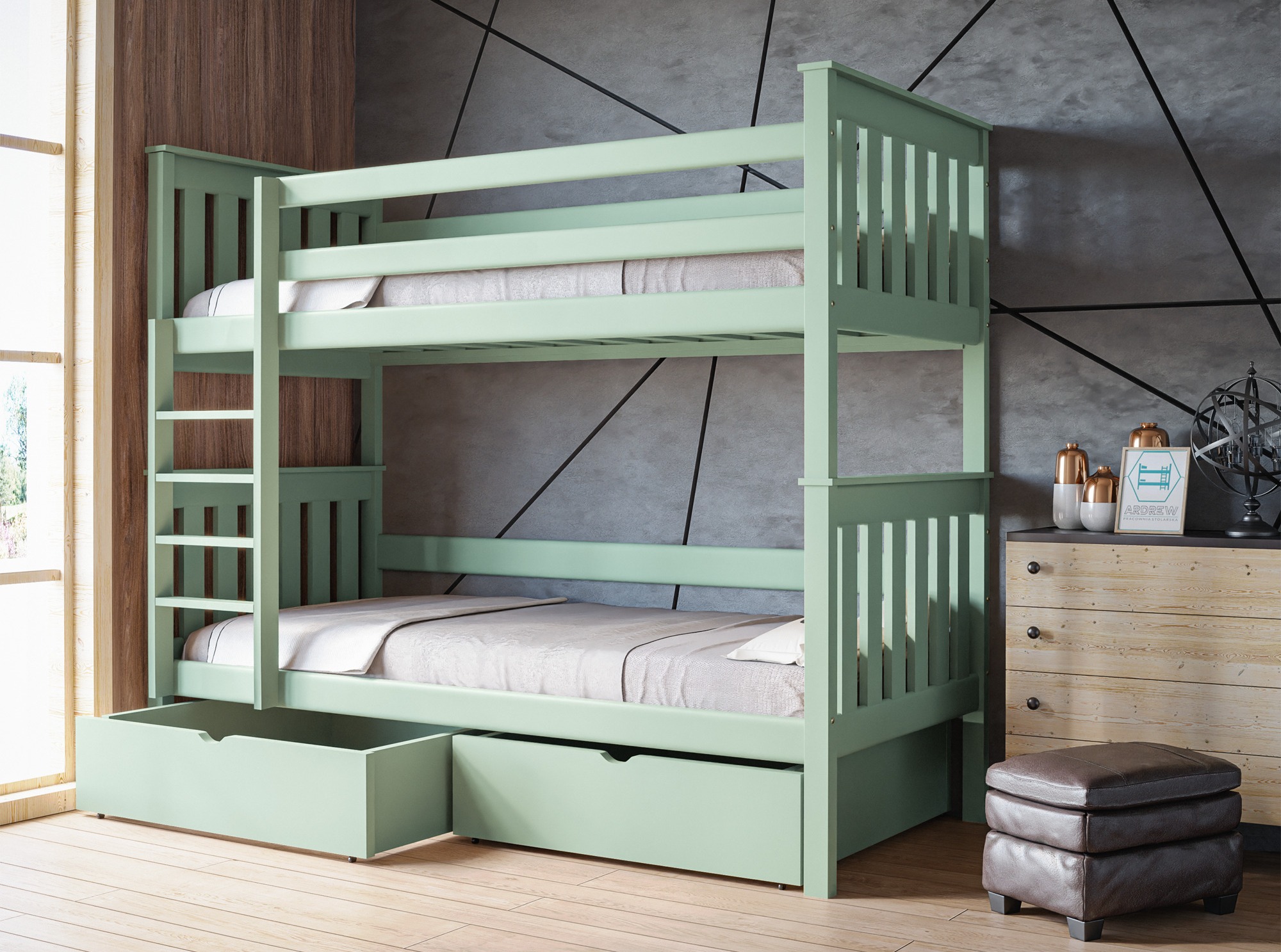 Κουκέτα Ula με Συρτάρια από μασίφ ξύλο Mint 90x200cm (Δώρο 10% Έκπτωση στα Στρώματα)