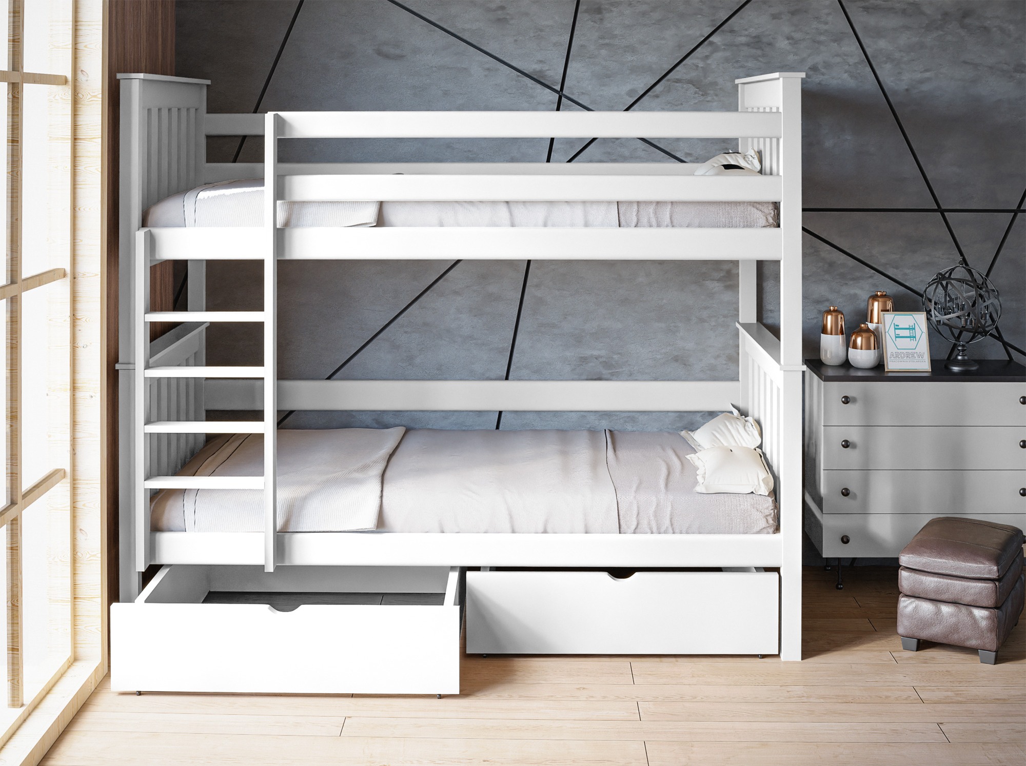 Κουκέτα Ula με Συρτάρια από μασίφ ξύλο White 90×200cm (Δώρο 10% Έκπτωση στα Στρώματα)