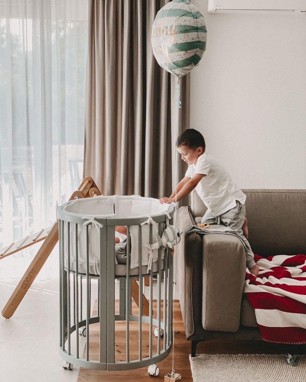 Επιπλέον, το πακέτο περιλαμβάνει ροδάκια με φρένο για εύκολη και ασφαλή μετακίνηση μέσα στο σπίτι, καθώς και ειδικές βάσεις για λειτουργία κούνιας. Ταυτόχρονα, περιλαμβάνει όλα τα απαραίτητα εξαρτήματα ώστε να μετατρέψετε γρήγορα την κούνια σε μεγαλύτερο παιδικό καναπέ, καλύπτοντας τις ανάγκες έως και την παιδική ηλικία.