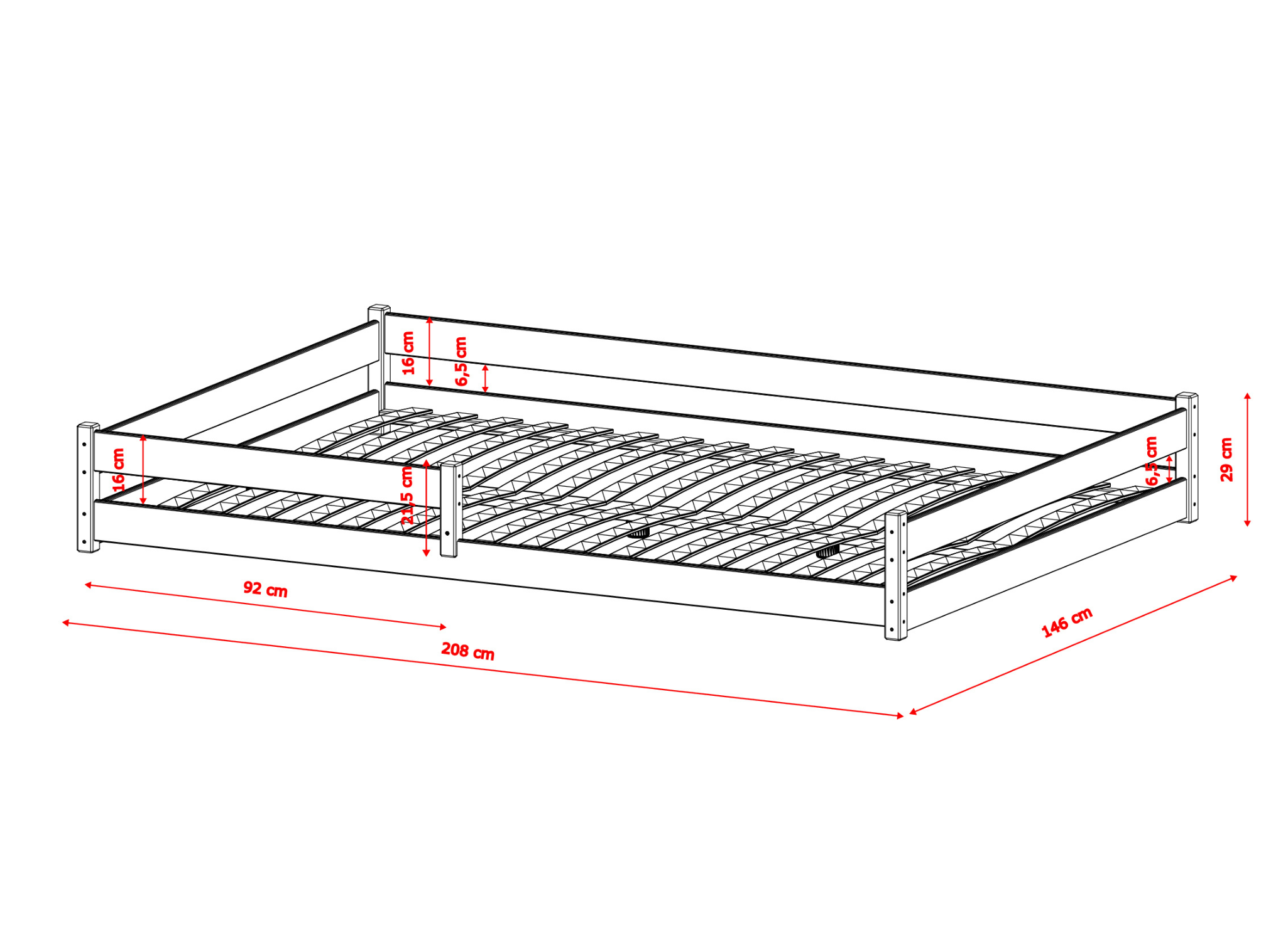 - Εξωτερική Διάσταση Κρεβατιού: Μήκος 208cm x Πλάτος 146cm x Ύψος 29cm